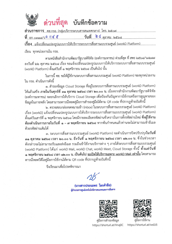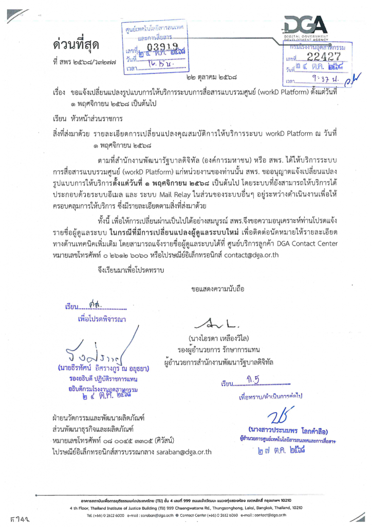เปลี่ยนแปลงรูปแบบการให้บริการระบบการสื่อสารแบบรวมศูนย์ (workD Platform)