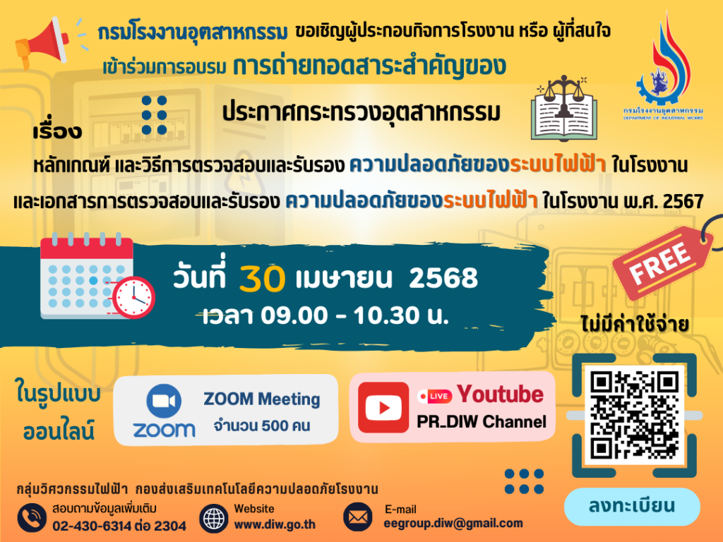 Facebook iconFacebookTwitter iconTwitterLINE iconLine Read more articles Previous Postขอเชิญผู้ประกอบกิจการโรงงานเข้าร่วมอบรม เรื่อง “มาตรการความปลอดภัยสำหรับการกองเก็บวัสดุในโรงงาน” ในวันที่ 10 เมษายน 2568 ผ่านสื่ออิเล็กทรอนิกส์ Next Postขอเชิญเข้าร่วมงานสัมมนาวิชาการในหัวข้อเรื่อง “Safety: The New Era” ในวันอังคารที่ 6 พฤษภาคม 2568 เวลา 08.30 – 12.00 น. ณ ห้องประชุมสัตตบงกช ชั้น 3 อาคารเรียน 1 มหาวิทยาลัยนอร์ทกรุงเทพ วิทยาเขตรังสิต