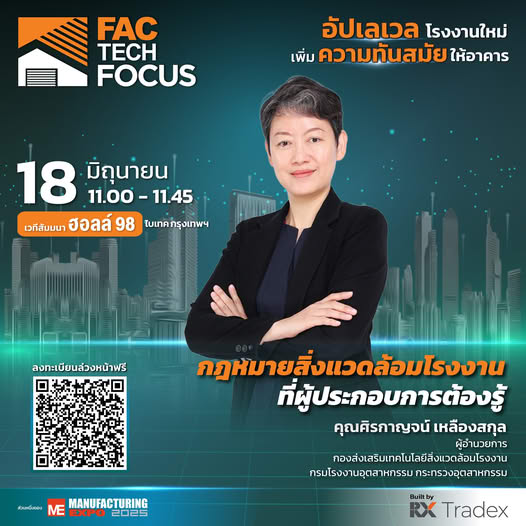 แถมเจาะลึก พ.ร.บ.โรงงาน ข้อกำหนด และเงื่อนไขการขอใบอนุญาตต่างๆ ด้านสิ่งแวดล้อม เพื่อยกระดับโรงงานให้ได้มาตรฐานและยั่งยืน มาปรับกลยุทธ์ เพื่ออัปเลเวล #โรงงานยุคใหม่ เพิ่มความทันสมัยให้อาคาร ที่ต้องใส่ใจสิ่งแวดล้อม
