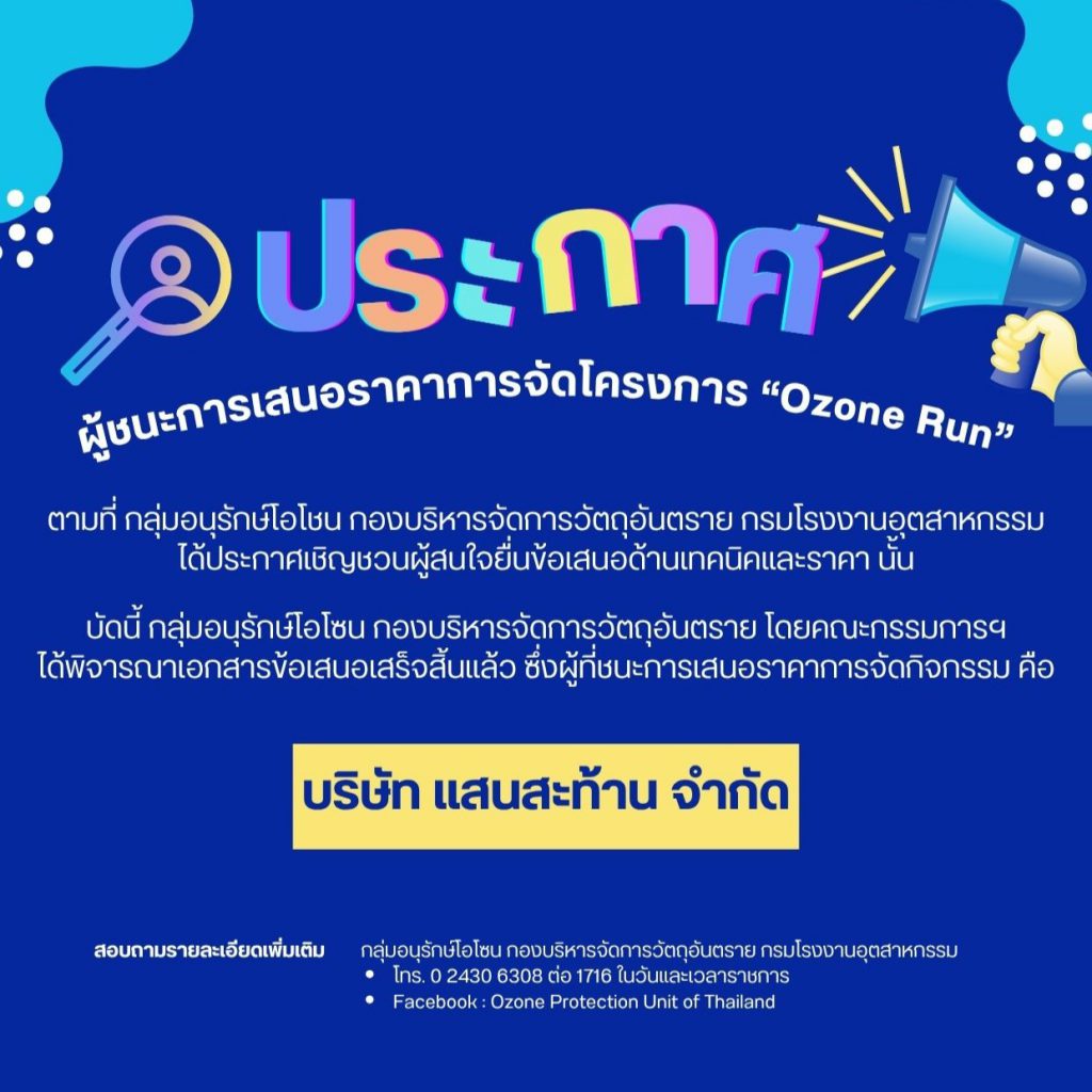 ประกาศผลผู้ชนะการเสนอราคาการจัดโครงการ “Ozone Run”