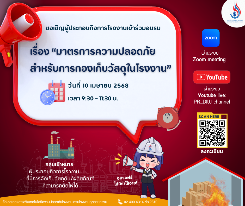 Facebook iconFacebookTwitter iconTwitterLINE iconLine Read more articles Previous Postขอเชิญเข้าร่วมการสัมมนาสัญจร (Roadshow) เรื่อง “Towards a Greener and Safer Industry : อุตสาหกรรมไทยยุคใหม่ที่ปลอดภัยและยั่งยืน” ในวันที่ 20 พฤษภาคม 2568 ณ โรงแรม แกรนด์ อินเตอร์ โฮเทล จังหวัดสมุทรสาคร Next Postขอเชิญเข้าร่วมฝึกอบรม การถ่ายทอดสาระสำคัญของประกาศกระทรวงอุตสาหกรรม เรื่อง หลักเกณฑ์และวิธีการตรวจสอบและรับรองความปลอดภัยของระบบไฟฟ้าในโรงงาน และเอกสารการตรวจสอบและรับรองความปลอดภัยของระบบไฟฟ้าในโรงงาน พ.ศ. 2567 ในวันที่ 30 เมษายน 2568 ผ่านสื่ออิเล็กทรอนิกส์