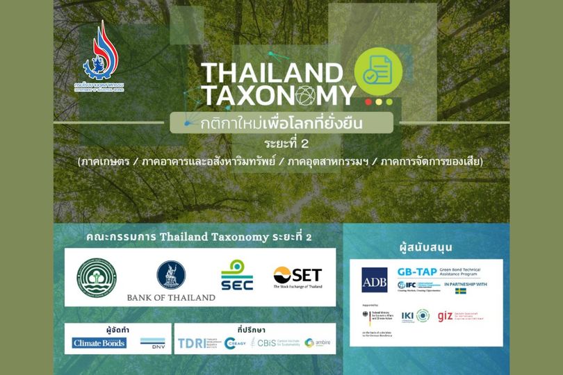 หน่วยงานภาครัฐ ภาคธุรกิจ และภาคการเงิน ได้ร่วมกันจัดทำมาตรฐานการจัดกลุ่มกิจกรรมทางเศรษฐกิจที่คำนึงถึงสิ่งแวดล้อม (Thailand Taxonomy) ที่สอดคล้องกับสากล และเหมาะสมกับบริบทไทย เพื่อให้ทุกภาคส่วนใช้เป็นแนวทางอ้างอิง ในการจำแนกกิจกรรมทางเศรษฐกิจที่เป็นมิตรต่อสิ่งแวดล้อมที่เป็นมาตรฐานเดียวกันอันจะช่วยส่งเสริม การจัดสรรเงินทุน การบริหารจัดการความเสี่ยง และการลงทุนของภาคเอกชน รวมถึงการกำหนดนโยบายและมาตรการสนับสนุนของภาครัฐ เพื่อให้สามารถบรรลุเป้าหมายความยั่งยืนด้านสิ่งแวดล้อมของไทย โดยได้เผยแพร่ Thailand Taxonomy ระยะที่ 1 ไปเมื่อวันที่ 30 มิถุนายน 2566 โดยมุ่งเน้นวัตถุประสงค์ด้านการลดก๊าซเรือนกระจก (climate change mitigation) สำหรับภาคพลังงานและภาคการขนส่ง