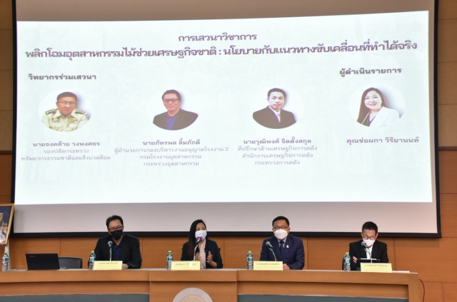 วันศุกร์ที่ 1 เมษายน 2565 เวลา 09.30 น. นายภัทรพล ลิ้มภักดี ผู้อำนวยการกองบริการงานอนุญาตโรงงานงาน 2 ผู้แทนจากกระทรวงอุตสาหกรรม ร่วมเป็นเกียรติ การเสวนาวิชาการ เพื่อขับอุตสาหกรรมไม้ของไทยภายใต้หัวข้อ ” พลิกโฉมอุตสาหกรรมไม้ช่วยเศรษฐกิจชาติ: นโยบายกับแนวทางขับเคลื่อนที่ทำได้จริง” โดยมี ผู้แทนจากกระทรวงทรัพยากรธรรมชาติและสิ่งแวดล้อม กระทรวงการคลัง กระทรวงการอุดมศึกษา วิทยาศาสตร์ วิจัยและนวัตกรรม และเจ้าที่ที่เกี่ยวข้องเข้าร่วมการเสวนา เพื่อนำเสนอข้อมูล ปัญหาอุปสรรค และข้อเสนอแนะแนวทางการขับเคลื่อนอุตสาหกรรมไม้จากเวทีจัดเสวนา ตลอดจนเป็นการระดมความคิดและนำเสนอความเป็นไปได้ด้านนโยบายกับแนวทางการขับเคลื่อนอุตสาหกรรมไม้ที่ทำได้จริง ณ ห้องประชุมจงรักปรีชานนท์ ตึกวนศาสตร์ 72 ปี คณะวนศาสตร์ มหาวิทยาลัยเกษตรศาสตร์ กรุงเทพมหานคร