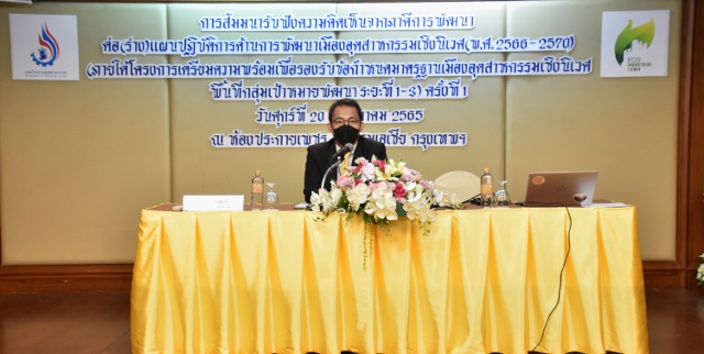 วันศุกร์ที่ 20 พฤษภาคม 2565 เวลา 09.00 น. นายศุภกิจ บุญศิริ รองอธิบดีกรมโรงงานอุตสาหกรรม เป็นประธานกล่าวเปิดงานสัมมนารับฟังความคิดเห็นจากภาคีการพัฒนา ต่อ (ร่าง) แผนปฏิบัติการด้านการพัฒนาเมืองอุตสาหกรรมเชิงนิเวศ (พ.ศ. 2566-2570) การจัดประชุม ครั้งนี้ เป็นกิจกรรมภายใต้โครงการเตรียมความพร้อมเพื่อรองรับข้อกำหนดมาตรฐาน การตรวจสอบ และรับรองมาตรฐานเมืองอุตสาหกรรมเชิงนิเวศ ในพื้นที่กลุ่มเป้าหมายการพัฒนา ระยะที่ 1-3 ทั้งนี้ทางกรมโรงงานอุตสาหกรรมมีเป้าหมายที่จะผลักดันแผนปฏิบัติการ การพัฒนาเมืองอุตสาหกรรมเชิงนิเวศ ให้เป็นแผนระดับ 3 ด้านการพัฒนาเมืองอุตสาหกรรมเชิงนิเวศของประเทศ โดยตั้งเป้าว่าจะจัดทำให้แล้วเสร็จภายในปีงบประมาณนี้ และนำเสนอคณะกรรมการพัฒนาอุตสาหกรรมแห่งชาติ (กอช.) หรือตามแนวทางของตามที่สำนักงานสภาพัฒนาการเศรษฐกิจและสังคมแห่งชาติกำหนด เพื่อนำเสนอต่อ คณะรัฐมนตรี (ครม.) พิจารณาให้ความเห็นชอบต่อไป โดยวัตถุประสงค์หลักของโครงการ เป็นการดำเนินงานเพื่อปรับปรุงข้อกำหนดมาตรฐาน ระบบตรวจสอบและรับรองการเป็นเมืองอุตสาหกรรมเชิงนิเวศ พร้อมทั้งจัดทำแผนปฏิบัติการ การพัฒนาเมืองอุตสาหกรรมเชิงนิเวศ ปี พ.ศ. 2566 – 2570 สำหรับเป็นกรอบแนวทางการบูรณาการ งานพัฒนาเมืองอุตสาหกรรมเชิงนิเวศให้เห็นผลอย่างเป็นรูปธรรม อีกทั้งจะเป็นกรอบและทิศทางให้พื้นที่เมืองต้นแบบทั้ง 53 พื้นที่ ใน 39 จังหวัดของประเทศไทย ได้นำไปปรับใช้ให้เหมาะสมตามบริบทของพื้นที่