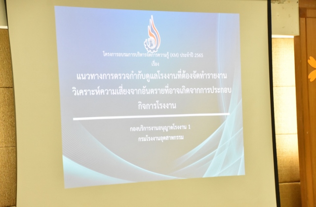 วันศุกร์ที่ 27 พฤษภาคม 2565 เวลา 08.45 น. นายสหวัฒน์ โสภา รองอธิบดีกรมโรงงานอุตสาหกรรม เป็นประธานเปิดโครงการให้ความรู้กับเจ้าหน้าที่กรมโรงงานอุตสาหกรรม เรื่อง “แนวทางการตรวจกำกับดูแลโรงงานที่ต้องจัดทำรายงานวิเคราะห์ความเสี่ยงจากอันตรายที่อาจเกิดจากการประกอบกิจการโรงงาน” โดยมีนายศุภชัย โปฎก ผู้อำนวยการกองบริการงานอนุญาตโรงงาน 1 กล่าวรายงาน พร้อมด้วยนายภัทรพล ลิ้มภักดี ผู้อำนวยการกองบริการงานอนุญาตโรงงาน 2 ข้าราชการ และเจ้าหน้าที่กรมโรงงานอุตสาหกรรมที่เกี่ยวข้องเข้าร่วมโครงการ ณ ห้องประชุม 509 ชั้น 5 อาคารกรมโรงงานอุตสาหกรรม