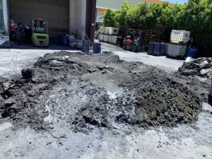 บริษัท วายซี รีไซเคิล จำกัด เป็นสถานที่เก็บรักษาวัตถุอันตราย เช่น ขี้เถ้าที่มีองค์ประกอบของ Zinc oxide (สังกะสี) จากกระบวนการถลุง หลอม หล่อโลหะ,กากตะกอนโลหะชนิดต่าง ๆ ไม่เข้าข่ายเป็นโรงงานตามพระราชบัญญัติโรงงาน พ.ศ. 2535 เหตุเกิดบริเวณที่กองเก็บ Zinc oxide ซึ่งบรรจุในถุงบิกแบ็ก ขณะที่เข้าตรวจสอบพบว่ามีกองกากตะกอนโลหะ ลักษณะเป็นฝุ่นสีเทาดำปนเขียวเข้ม บางจุดเปียกชื้น มีกลิ่นเหม็นฉุน คนงานกำลังตักใส่ถุงบิกแบ็ก เพื่อรวบรวมและดำเนินการส่งกำจัดต่อไป เบื้องต้นศูนย์วิจัยและเตือนภัยมลพิษโรงงานภาคตะวันออก กรมโรงงานอุตสาหกรรม ได้เก็บตัวอย่างกากตะกอนโลหะที่ไหม้ไฟ เพื่อนำไปตรวจวัดวิเคราะห์ด้วยเครื่องวิเคราะห์องค์ประกอบโลหะ (X-ray fluorescence) และวิเคราะห์องค์ประกอบโลหะทั้งหมดในตัวอย่างที่เก็บ