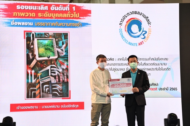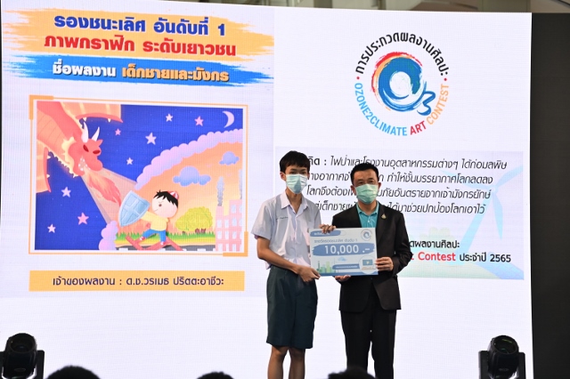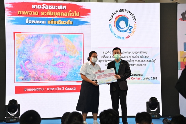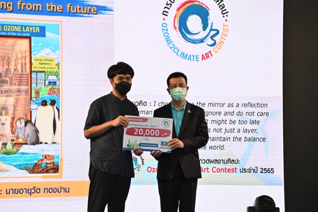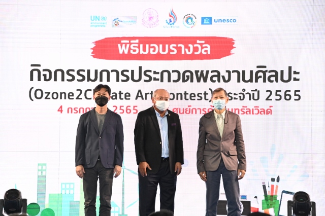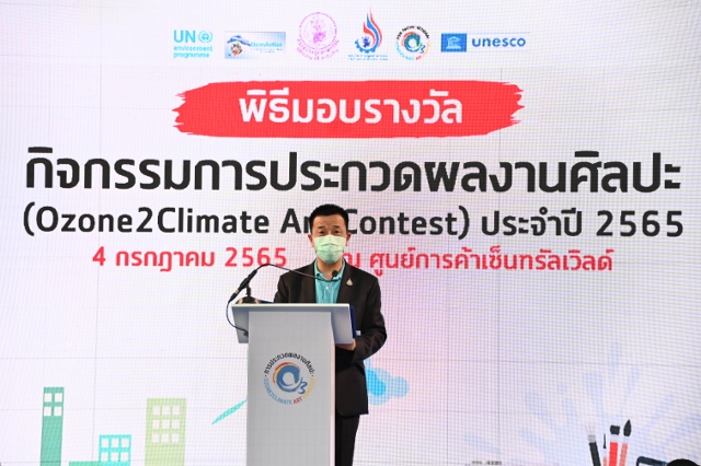 วันจันทร์ที่ 4 กรกฎาคม 2565 เวลา 14.00 น. นายวันชัย พนมชัย อธิบดีกรมโรงงานอุตสาหกรรม ให้เกียรติเป็นประธานมอบรางวัลกิจกรรมการประกวดผลงานศิลปะ Ozone2 Climate พร้อมด้วย นายศุภกิจ บุญศิริ นายสหวัฒน์ โสภา รองอธิบดีกรมโรงงานอุตสาหกรรม ผู้บริหาร ผู้เข้ารับรางวัล และเจ้าหน้าที่ที่เกี่ยวข้อง การประกวดในครั้งนี้แบ่งเป็น 2 ระดับ ได้แก่ ระดับเยาวชน และระดับบุคคลทั่วไป แบ่งผลงานเป็น 3 ประเภท ได้แก่ ภาพถ่าย ภาพวาด และออกแบบกราฟิก ซึ่งการจัดงานในครั้งนี้เพื่อส่งเสริมให้เยาวชน และประชาชน ตระหนักถึงความสำคัญของการปกป้องชั้นบรรยากาศและสภาพภูมิอากาศ่โลก จัดขึ้น ณ ลาน EDEN ชั้น 3 ศูนย์การค้าเซ็นทรัลเวิลด์