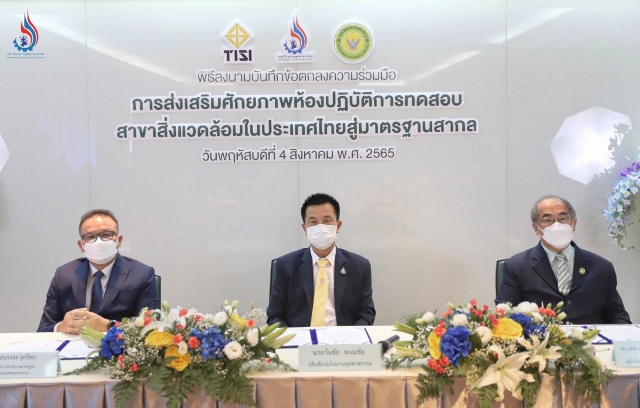 วันนี้ (4 สิงหาคม 2565) กรมโรงงานอุตสาหกรรม (กรอ.) ร่วมกับสำนักงานมาตรฐานผลิตภัณฑ์อุตสาหกรรม(สมอ.) และกรมวิทยาศาสตร์บริการ(วศ.) บูรณาการความร่วมมือในการสนับสนุนและส่งเสริมให้ห้องปฏิบัติการทดสอบสาขาสิ่งแวดล้อมของไทยสู่มาตรฐานสากล เน้นตรวจกำกับด้วยมาตรฐานเดียว ลดความซ้ำซ้อน และอำนวยความสะดวกแก่ผู้ประกอบการ
