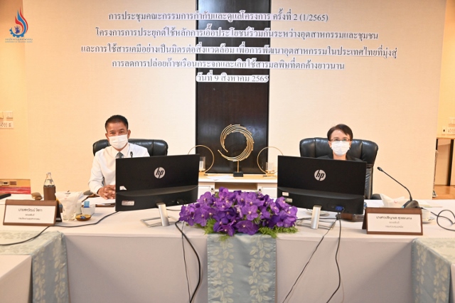 วันอังคารที่ 9 สิงหาคม 2565 เวลา 09.00 น. นายสหวัฒน์ โสภา รองอธิบดีกรมโรงงานอุตสาหกรรม พร้อมด้วยนางสาวปรีญาพร สุวรรณเกษ รองอธิบดีกรมควบคุมมลพิษ เป็นประธานร่วมการประชุมคณะกรรมการกำกับและดูแลโครงการ การประยุกต์ใช้หลักการเอื้อประโยชน์ร่วมกัน ระหว่างอุตสาหกรรมและชุมชน และการใช้สารเคมีอย่างเป็นมิตรต่อสิ่งแวดล้อม เพื่อการพัฒนาอุตสาหกรรมในประเทศไทย มุ่งสู่การลดการปล่อยก๊าซเรือนกระจก เลิกใช้สารมลพิษที่ตกค้างยาวนาน (Project Steering Committee) ครั้งที่ 2 ( 1/2565 ) โดยมี นายณัฏฐพงษ์ จุลาเกตุโพธิชัย ผู้อำนวยการกองพัฒนาอุตสาหกรรมเชิงนิเวศ พร้อมด้วยผู้แทนจากกรมควบคุมมลพิษ สภาอุตสาหกรรมแห่งประเทศไทย มหาวิทยาลัยเกษตรศาสตร์ สำนักงานเศรษฐกิจอุตสาหกรรม องค์การพัฒนาอุตสาหกรรมแห่งสหประชาชาติ บริษัท ปตท. จำกัด บริษัท พีทีที แอลเอ็นจี จำกัด บริษัท พีทีที โกลบอล เคมิคอล จำกัด (มหาชน) และบริษัท สหพัฒนาอินเตอร์โฮลดิ้ง จำกัด (มหาชน) ผู้ทรงคุณวุฒิและเจ้าหน้าที่ที่เกี่ยวข้องเข้าร่วมประชุม เพื่อรายงานความก้าวหน้าในการดำเนินโครงการ และพิจารณาแผนการดำเนินงานในปีที่ 3 ( กันยายน 2565 – สิงหาคม 2566 ) ณ ห้องประชุม Lotus Suite 5 – 7 ชั้น 22 โรงแรมเซ็นทารา แกรนด์ แอท เซ็นทรัลเวิลด์ กรุงเทพฯ