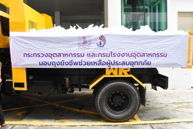 กรมโรงงานอุตสาหกรรม กระทรวงอุตสาหกรรม ปล่อยรถนำถุงยังชีพช่วยเหลือผู้ประสบภัยน้ำท่วม จ.สุโขทัย