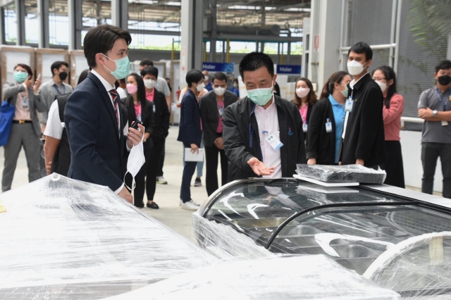 วันอังคารที่ 9 พฤศจิกายน 2564 เวลา 10.00 น. นายวันชัย พนมชัย อธิบดีกรมโรงงานอุตสาหกรรม พร้อมด้วยนายวีระกิตติ์ รันทกิจธนวัชร์ รองอธิบดีกรมโรงงานอุตสาหกรรม นางสาวรัตนา รักษ์ตระกูล ผู้อำนวยการกองบริหารจัดการวัตถุอันตราย และคณะ ลงพื้นที่ ตำบลคลองหนึ่ง อำเภอคลองหลวง จังหวัดปทุมธานี เข้าเยี่ยมชม บริษัท พัฒนาอินเตอร์คูล จำกัด โดยมีนายเอกพงษ์ ตั้งสิริมานะกุล กรรมการผู้จัดการ ให้การต้อนรับพร้อมพาเยี่ยมชมโรงงาน โดย บริษัท พัฒนาอินเตอร์คูล จำกัด เป็นโรงงานต้นแบบที่สามารถปรับเปลี่ยนกระบวนการผลิตใช้สารทำความเย็นทดแทนสาร HCFCs ซึ่งช่วยลดปริมาณการปลดปล่อยก๊าซเรือนกระจกสู่บรรยากาศได้เป็นจำนวนมากในภาคอุตสาหกรรม
