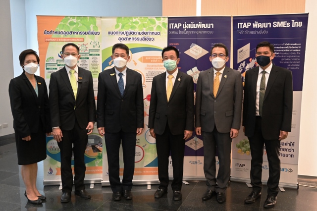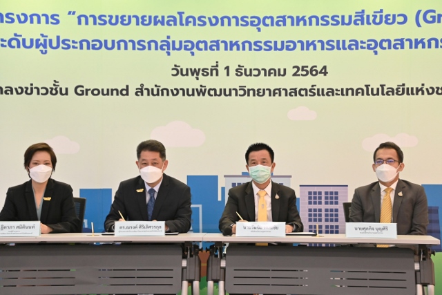 วันพุธที่ 1 ธันวาคม 2564 เวลา 10.00 น. นายวันชัย พนมชัย อธิบดีกรมโรงงานอุตสาหกรรม ลงนามบันทึกข้อตกลงความร่วมมือ ระหว่างกรมโรงงานอุตสาหกรรม กระทรวงอุตสาหกรรม และ สำนักงานพัฒนาวิทยาศาสตร์และเทคโนโลยีแห่งชาติ (สวทช.) กระทรวงการอุดมศึกษา วิทยาศาสตร์ วิจัยและนวัตกรรม (อว.) โดย ดร.ณรงค์ ศิริเลิศวรกุล ผู้อำนวยการ สวทช. ภายใต้โครงการ “การขยายผลโครงการอุตสาหกรรมสีเขียว (Green Industry) เพื่อยกระดับผู้ประกอบการกลุ่มอุตสาหกรรมอาหารและอุตสาหกรรมที่เกี่ยวข้อง” โดยมีนายศุภกิจ บุญศิริ รองอธิบดีกรมโรงงานอุตสาหกรรม ผู้บริหาร และเจ้าหน้าที่ที่เกี่ยวข้องเข้าร่วมเพื่อแสดงจุดยืนในความร่วมมือถึงการรวมพลังกันขับเคลื่อนเพื่อการพัฒนาผู้ประกอบการอุตสาหกรรมอาหาร ให้สามารถปรับปรุงประสิทธิภาพการผลิต นำไปสู่อุตสาหกรรมสีเขียว ซึ่งจะทำให้เกิดการผลิตที่เป็นมิตรกับสิ่งแวดล้อมและการพัฒนาที่ยั่งยืน ณ ห้องแถลงข่าวชั้น Ground สำนักงานพัฒนาวิทยาศาสตร์และเทคโนโลยีแห่งชาติ (อาคารวิจัยโยธี) กรุงเทพฯ