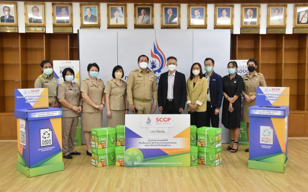 กรมโรงงานอุตสาหกรรม หรือ กรอ. เข้าร่วมโครงการ “80 ปี กระทรวงอุตสาหกรรม 8,000 กิโลกรัม รีไซเคิลสู่สังคม” ในโอกาสครบรอบ 80 ปี แห่งการสถาปนากระทรวงอุตสาหกรรม บริจาคกระดาษที่ไม่ใช้แล้วจำนวน 1,890 กิโลกรัม ให้แก่ บริษัท เอสซีจี แพคเกจจิ้ง จำกัด (มหาชน) หรือ SCGP โดยติดตั้งจุดรับกระดาษในระดับกอง ตั้งแต่เดือนมกราคม – สิงหาคม 2565 เพื่อส่งเสริมการใช้ทรัพยากรอย่างคุ้มค่า และนำกระดาษใช้แล้วในหน่วยงานมาหมุนเวียนนำกลับเข้าสู่กระบวนการรีไซเคิลสำหรับนำไปผลิตเป็นผลิตภัณฑ์ต่างๆ เช่น กระดาษถ่ายเอกสาร เตียงสนามกระดาษ ชุดโต๊ะเรียน ชุดโต๊ะอาหาร เป็นต้น ให้เกิดประโยชน์สูงสุดและมอบให้เป็นสาธารณประโยชน์กลับคืนสู่สังคม ตามแนวทางการขับเคลื่อน BCG Model ของกระทรวงอุตสาหกรรม นำร่องภาครัฐในการขับเคลื่อนให้เกิดขึ้นเป็นรูปธรรมสู่หน่วยงานราชการและผู้ประกอบการ สร้างการเติบโตที่ยั่งยืนต่อเนื่อง