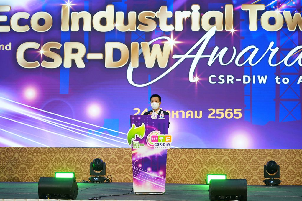 “เมื่อวันที่ 24 สิงหาคม 2565 กรอ. ได้จัดงานแถลงผลการดำเนินงานโครงการพัฒนาและยกระดับเมืองอุตสาหกรรมเชิงนิเวศที่เป็นมิตรกับสิ่งแวดล้อมสู่เมืองสิ่งแวดล้อมที่ยั่งยืน และมอบรางวัล CSR-DIW Awards และ CSR-DIW Continuous Awards ให้กับผู้ประกอบการอุตสาหกรรมจำนวนกว่า 500 ราย รวมทั้งเดินหน้าประกาศพื้นที่เมืองอุตสาหกรรมเชิงนิเวศเพิ่มเติมอีก 36 พื้นที่ โดยวางเป้าหมาย ภายในปี พ.ศ. 2580 ทั้ง 54 พื้นที่ ต้องพัฒนาสู่การเป็นเมืองอุตสาหกรรมเชิงนิเวศ ระดับที่ 5 เมืองน่าอยู่ คู่อุตสาหกรรม ซึ่งการเป็นเมืองอุตสาหกรรมเชิงนิเวศ ระดับที่ 5 นั้น จะต้องมีลักษณะเชิงกายภาพ เศรษฐกิจ สังคม สิ่งแวดล้อม และคุณภาพชีวิตที่ดี มีการพึ่งพาอาศัยเกื้อกูลกัน และสามารถอยู่ร่วมกันได้อย่างยั่งยืน” อธิบดีกรมโรงงานฯ กล่าวปิดท้าย
