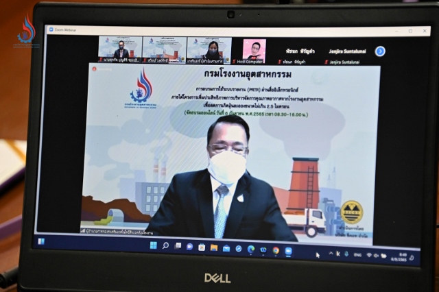 วันอังคารที่ 6 กันยายน 2565 เวลา 09.00 น. นายศุภกิจ บุญศิริ รองอธิบดีกรมโรงงานอุตสาหกรรม เป็นประธานเปิดการสัมมนา “โครงการเพิ่มประสิทธิภาพการบริหารจัดการคุณภาพอากาศจากโรงงานอุตสาหกรรม เพื่อลดฝุ่นละอองขนาดไม่เกิน 2.5 ไมครอน ผ่านสื่อระบบอิเล็กทรอนิกส์” โดยมี นายณรงค์ บัวบาน ผู้อำนวยการกองส่งเสริมเทคโนโลยีสิ่งแวดล้อมโรงงาน กล่าวรายงาน พร้อมด้วย ผู้ประกอบกิจการโรงงาน และเจ้าหน้าที่ที่เกี่ยวข้องเข้าร่วม จำนวน 140 คน