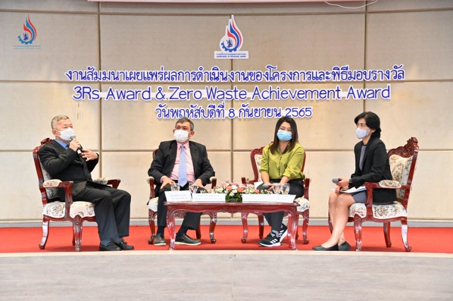 งานสัมมนาเผยแพร่ผลการดำเนินงานและพิธีมอบรางวัล โครงการเพิ่มประสิทธิภาพการจัดการกากอุตสาหกรรมที่มีปัญหาเสี่ยงต่อการลักลอบทิ้ง โดยใช้หลักการ 3Rs และ KAIZEN ประจำปีงบประมาณ พ.ศ. 2565
