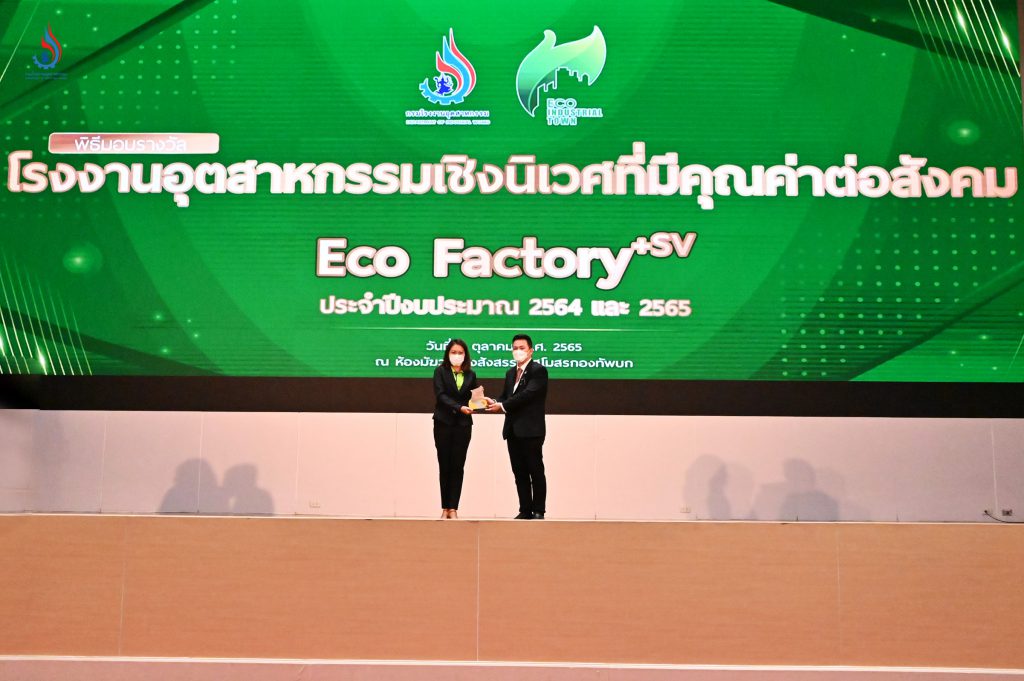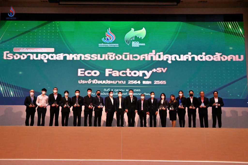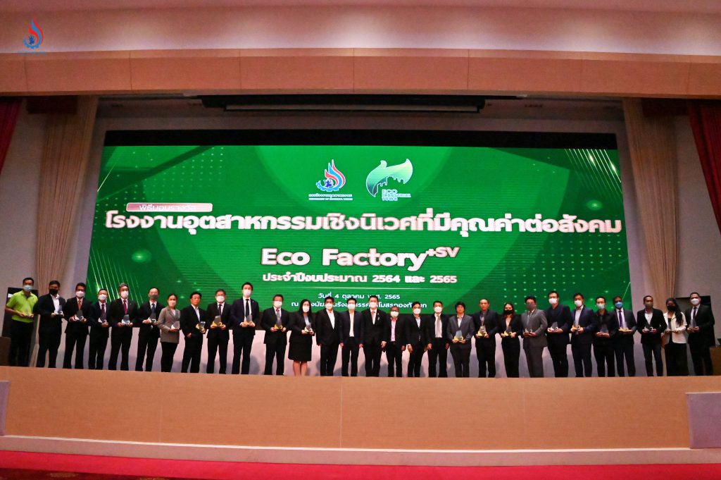 วันอังคารที่ 4 ตุลาคม 2565 เวลา 13.00 น. นายวันชัย พนมชัย อธิบดีกรมโรงงานอุตสาหกรรม มอบหมายให้ นายณัฏฐพงษ์ จุลาเกตุโพธิชัย ผู้อำนวยการกองพัฒนาอุตสาหกรรมเชิงนิเวศ เป็นประธานในพิธีมอบรางวัล โรงงานอุตสาหกรรมเชิงนิเวศที่มีคุณค่าต่อสังคม (Eco Factory+SV) ประจำปีงบประมาณ 2564 และ 2565 ณ ห้องมัฆวานรังสรรค์ ชั้น 3 สโมสรทหารบก (วิภาวดี)