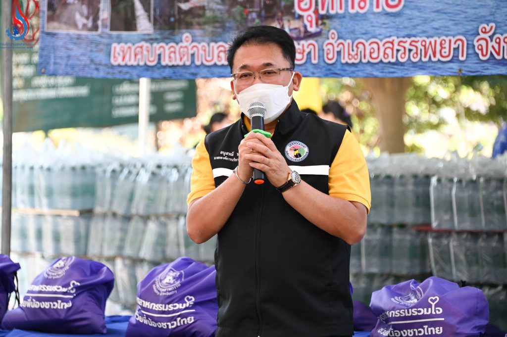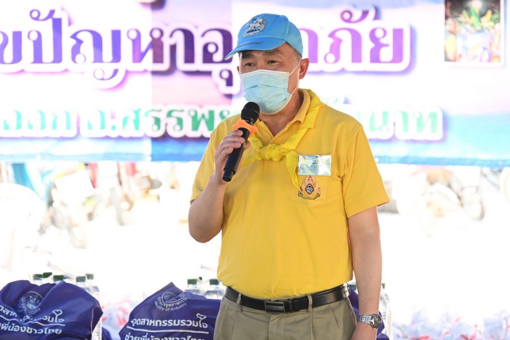 กระทรวงอุตสาหกรรม จึงดำเนินการภายใต้มาตรการ 3 ระยะ คือ 1.ป้องกัน 2.เยียวยา 3.ฟื้นฟู โดยจัดกิจกรรม “อุตสาหกรรมรวมใจ ช่วยพี่น้องชาวไทย” พร้อมผนึกกำลังกับภาคเอกชน โรงงานอุตสาหกรรมทั่วประเทศ หน่วยงานในสังกัดกระทรวงอุตสาหกรรม สถาบันเครือข่าย การนิคมอุตสาหกรรมแห่งประเทศไทย ธนาคารพัฒนาวิสาหกิจขนาดกลางและขนาดย่อมแห่งประเทศไทย (SME D Bank) ร่วมมือกันช่วยเหลือเยียวยา บริจาคฯ สิ่งของเครื่องใช้ อุปโภค-บริโภค ที่จำเป็นจัดเป็นถุงยังชีพ เช่น ข้าวสาร อาหารแห้ง บะหมี่กึ่งสำเร็จรูป น้ำตาล น้ำปลา น้ำมัน ยากันยุง ปลากระป๋อง อาหารสำเร็จรูป กระดาษทิชชู น้ำดื่ม และยารักษาโรค เป็นต้น จำนวน 2,000 ถุง นำมามอบให้กับพ่อแม่ พี่น้องผู้ประสบอุกภัยใน 3 ตำบล คือ ตำบลโพนางดำออก ตำบลหาดอาสา และตำบลสรรพยา อำเภอสรรพยา จังหวัดชัยนาท เป็นการเร่งด่วน โดยในจุดแรกได้มอบถุงยังชีพ จำนวน 500 ถุง ณ ศูนย์ประสานงานผู้ประสบภัยโพนางดำออก จุดที่สอง จำนวน 500 ถุง ณ ศูนย์อำนวยการป้องกันและบรรเทาอุทกภัยเทศบาลหาดอาษา จุดที่สาม จำนวน 500 ถุง ณโรงเรียนเทศบาลสรรพยา และจุดที่สี่ จำนวน 500 ถุง ณ ย่านโรงพักเก่าสรรพยา