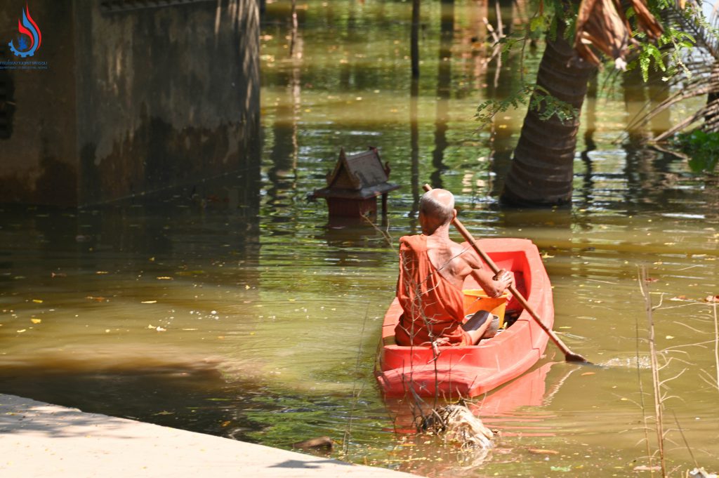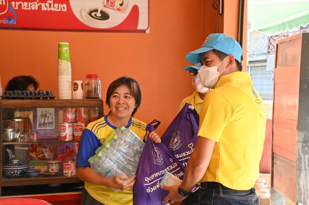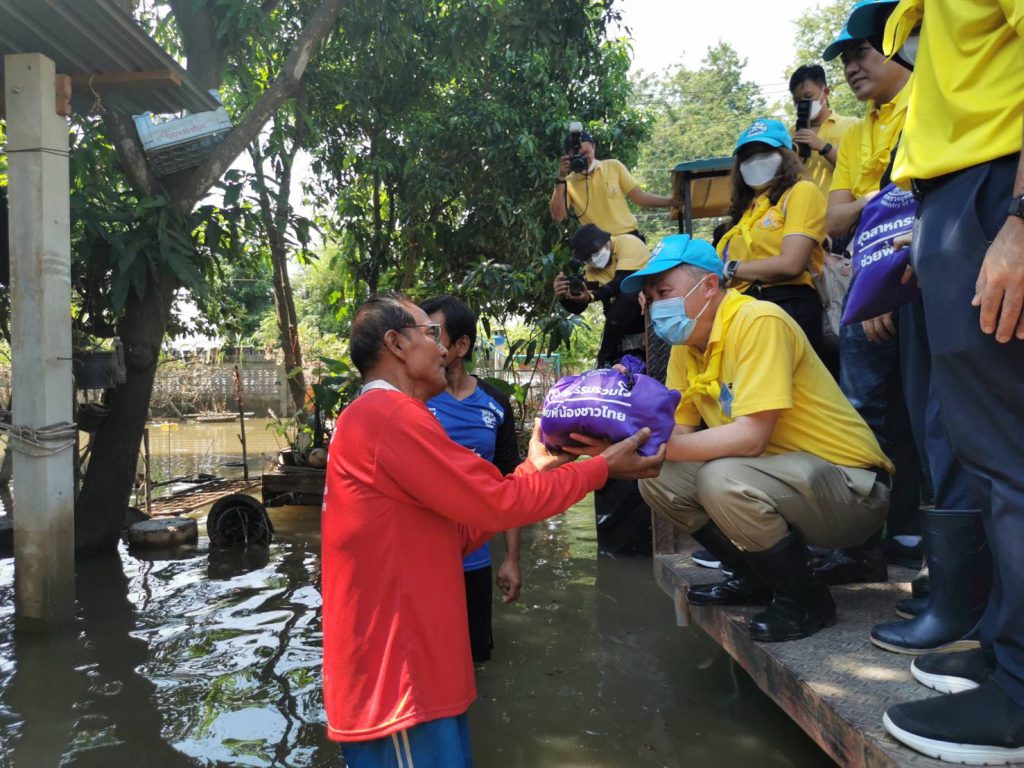 กระทรวงอุตสาหกรรม จึงดำเนินการภายใต้มาตรการ 3 ระยะ คือ 1.ป้องกัน 2.เยียวยา 3.ฟื้นฟู โดยจัดกิจกรรม “อุตสาหกรรมรวมใจ ช่วยพี่น้องชาวไทย” พร้อมผนึกกำลังกับภาคเอกชน โรงงานอุตสาหกรรมทั่วประเทศ หน่วยงานในสังกัดกระทรวงอุตสาหกรรม สถาบันเครือข่าย การนิคมอุตสาหกรรมแห่งประเทศไทย ธนาคารพัฒนาวิสาหกิจขนาดกลางและขนาดย่อมแห่งประเทศไทย (SME D Bank) ร่วมมือกันช่วยเหลือเยียวยา บริจาคฯ สิ่งของเครื่องใช้ อุปโภค-บริโภค ที่จำเป็นจัดเป็นถุงยังชีพ เช่น ข้าวสาร อาหารแห้ง บะหมี่กึ่งสำเร็จรูป น้ำตาล น้ำปลา น้ำมัน ยากันยุง ปลากระป๋อง อาหารสำเร็จรูป กระดาษทิชชู น้ำดื่ม และยารักษาโรค เป็นต้น จำนวน 2,000 ถุง นำมามอบให้กับพ่อแม่ พี่น้องผู้ประสบอุกภัยใน 3 ตำบล คือ ตำบลโพนางดำออก ตำบลหาดอาสา และตำบลสรรพยา อำเภอสรรพยา จังหวัดชัยนาท เป็นการเร่งด่วน โดยในจุดแรกได้มอบถุงยังชีพ จำนวน 500 ถุง ณ ศูนย์ประสานงานผู้ประสบภัยโพนางดำออก จุดที่สอง จำนวน 500 ถุง ณ ศูนย์อำนวยการป้องกันและบรรเทาอุทกภัยเทศบาลหาดอาษา จุดที่สาม จำนวน 500 ถุง ณโรงเรียนเทศบาลสรรพยา และจุดที่สี่ จำนวน 500 ถุง ณ ย่านโรงพักเก่าสรรพยา