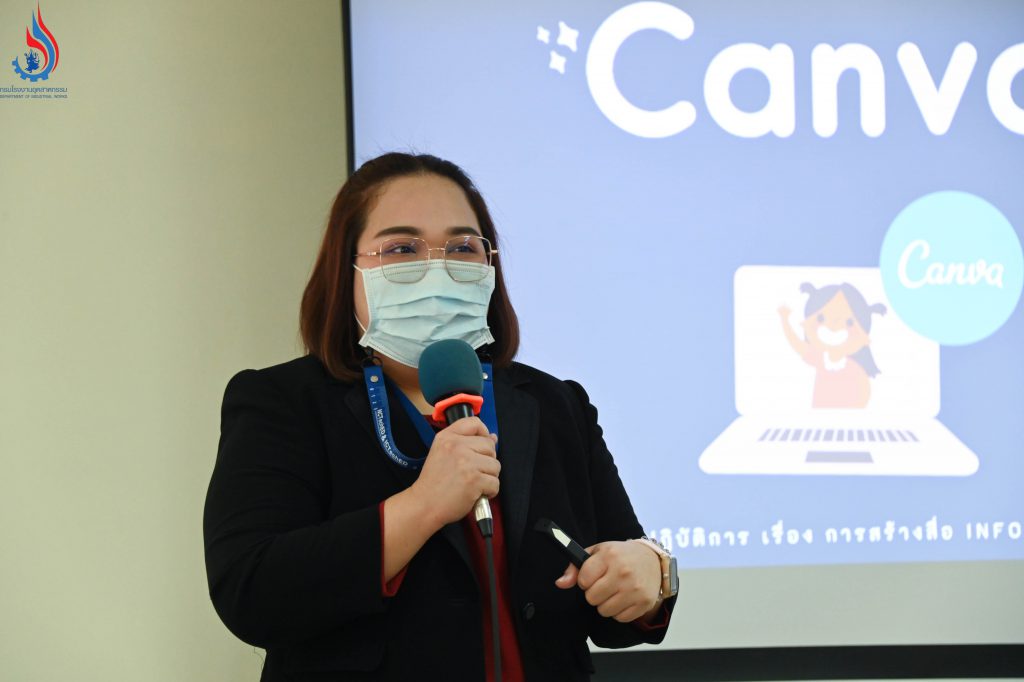 การสื่อสารได้เข้ามามีบทบาทหลายมิติในยุคดิจิทัล กรมโรงงานอุตสาหกรรมจึงให้ความสำคัญต่อการพัฒนาและเสริมสร้างศักยภาพของบุคลากรให้มีความรู้ ความสามารถ และก้าวทันเทคโนโลยีด้านการสื่อสารอย่างมีประสิทธิภาพ จึงจัดทำโครงการฝึกอบรมดังกล่าวขึ้น โดยถ่ายทอดความรู้เบื้องต้นเกี่ยวกับส่วนประกอบของเครื่องมือและคุณสมบัติการใช้โปรแกรมสำหรับสร้างสื่อข้อมูลในลักษณะภาพกราฟิก (Infographic) ซึ่งกำลังได้รับความนิยมอย่างแพร่หลายในปัจจุบัน ตลอดจนฝึกลงมือปฏิบัติด้วยโปรแกรม Canva เพื่อให้ผู้เข้ารับการฝึกอบรมสามารถสร้างสื่อนำเสนอข้อมูลที่มีเนื้อหาจำนวนมากมาจัดรูปแบบสวยงามน่าสนใจ กระชับ เข้าใจง่าย อันจะช่วยให้กลุ่มเป้าหมายสามารถเข้าถึงข้อมูลที่มีอยู่มากได้ในเวลาจำกัด และสามารถสื่อสารข้อมูลได้อย่างมีประสิทธิภาพมากยิ่งขึ้น