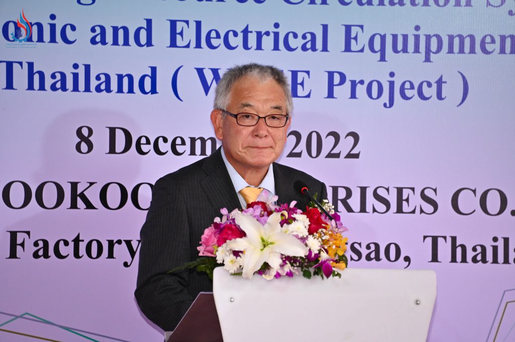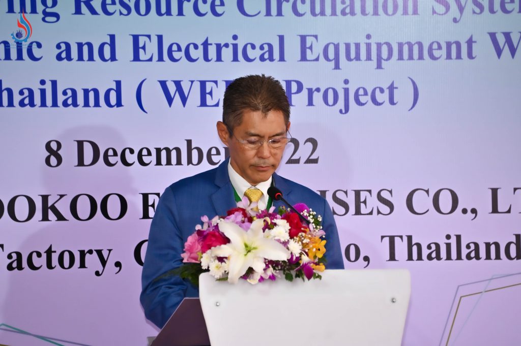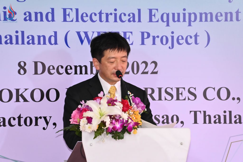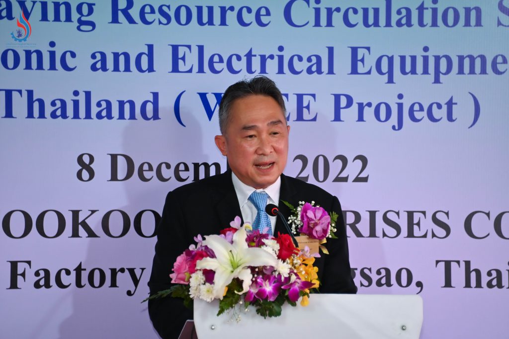 วันที่ 8 ธันวาคม 2565 เวลา 10.00 น. นายจุลพงษ์ ทวีศรี อธิบดีกรมโรงงานอุตสาหกรรม เป็นประธานพิธีเปิดโครงการสาธิตสำหรับการใช้ทรัพยากรหมุนเวียนที่คำนึงถึงการอนุรักษ์พลังงานโดยการใช้ประโยชน์จากซากผลิตภัณฑ์เครื่องใช้ไฟฟ้าและอิเล็กทรอนิกส์ในประเทศไทย (Electronic and Electrical Equipment Waste in Thailand: WEEE) โดยมี นายวาดะ ทากาชิ กรรมการบริหารองค์การพัฒนาพลังงานใหม่และเทคโนโลยีอุตสาหกรรม (NEDO) ประเทศญี่ปุ่น นายคาวามูระ ฮิโรโนริ ผู้แทน NEDO ประเทศไทย นายคาเนตะ มิโนรุ กรรมการบริหาร บริษัท อะบิซึ คอร์ปอเรชัน ประเทศญี่ปุ่น นายยาซูโอะ ฮีดากา ประธาน บริษัท ฮีดากา โยโก เอ็นเตอร์ไพรส์ จำกัด นายธนะเกียรติ นพเกตุ นายกองค์การบริหารส่วนตำบลหัวสำโรง ร่วมด้วย นางจินดา เตชะศรินทร์ ผู้อำนวยการกองบริหารจัดการกากอุตสาหกรรม และผู้เกี่ยวข้องเข้าร่วมงาน พร้อมเยี่ยมชมการบดย่อยและการคัดแยกซากผลิตภัณฑ์เครื่องใช้ไฟฟ้าและอิเล็กทรอนิกส์ด้วยระบบรีไซเคิล ซึ่งเป็นระบบอัตโนมัติที่นำมาใช้ในประเทศไทยเป็นครั้งแรก ณ บริษัท ฮีดากา โยโก เอ็นเตอร์ไพรส์ จำกัด สาขาโรงงานเกตเวย์ ตำบลหัวสำโรง อำเภอแปลงยาว จังหวัดฉะเชิงเทรา โดยโรงงานดังกล่าว จะเป็นต้นแบบสำหรับการรีไซเคิลซากผลิตภัณฑ์เครื่องใช้ไฟฟ้าและอิเล็กทรอนิกส์ด้วยระบบอัตโนมัติ เพื่อให้โรงงานในประเทศไทยสามารถนำไปใช้เป็นแบบอย่างที่ดีในการรีไซเคิล เพื่อรักษาสิ่งแวดล้อมต่อไป