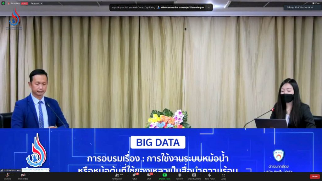 ซึ่งวันนี้เป็นการจัดอบรมรุ่นที่ 2 ให้กับผู้ประกอบกิจการโรงงาน วิศวกรควบคุมและอำนวยการใช้หม้อน้ำหรือหม้อต้มที่ใช้ของเหลวเป็นสื่อนำความร้อน ผู้ควบคุมประจำหม้อน้ำหรือหม้อต้มที่ใช้ของเหลวเป็นสื่อนำความร้อน ซึ่งกำหนดไว้จำนวน 3 รุ่น รุ่นละ 450 คน ผ่านสื่ออิเล็กทรอนิกส์ (Zoom Webinar) สำหรับรุ่นที่ 3 กำหนดฝึกอบรม ในวันที่ 26 มกราคม 2566