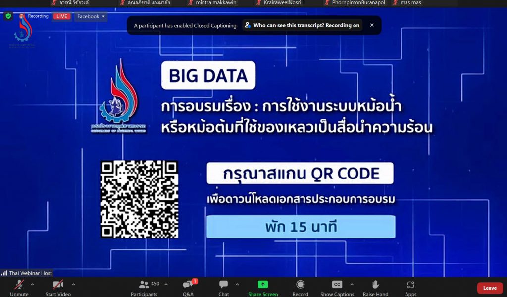 ซึ่งวันนี้เป็นการจัดอบรมรุ่นที่ 2 ให้กับผู้ประกอบกิจการโรงงาน วิศวกรควบคุมและอำนวยการใช้หม้อน้ำหรือหม้อต้มที่ใช้ของเหลวเป็นสื่อนำความร้อน ผู้ควบคุมประจำหม้อน้ำหรือหม้อต้มที่ใช้ของเหลวเป็นสื่อนำความร้อน ซึ่งกำหนดไว้จำนวน 3 รุ่น รุ่นละ 450 คน ผ่านสื่ออิเล็กทรอนิกส์ (Zoom Webinar) สำหรับรุ่นที่ 3 กำหนดฝึกอบรม ในวันที่ 26 มกราคม 2566