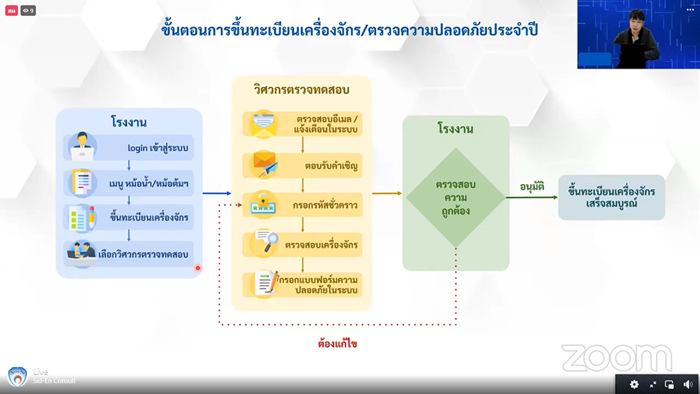 📝วันนี้ 20 มกราคม 2566 นายจุลพงษ์ ทวีศรี อธิบดีกรมโรงงานอุตสาหกรรม เป็นประธานเปิดการฝึกอบรมการใช้งานระบบฯ สำหรับวิศวกรตรวจทดสอบหม้อน้ำหรือหม้อต้มที่ใช้ของเหลวเป็นสื่อนำความร้อน (รุ่นที่ 2) ผ่านสื่ออิเล็กทรอนิกส์ (Zoom Webinar) พร้อมด้วย นายธีรทัศน์ อิศรางกูร ณ อยุธยา ผู้อำนวยการศูนย์เทคโนโลยีสารสนเทศและการสื่อสาร ณ ห้องประชุม 509 อาคารกรมโรงงานอุตสาหกรรม