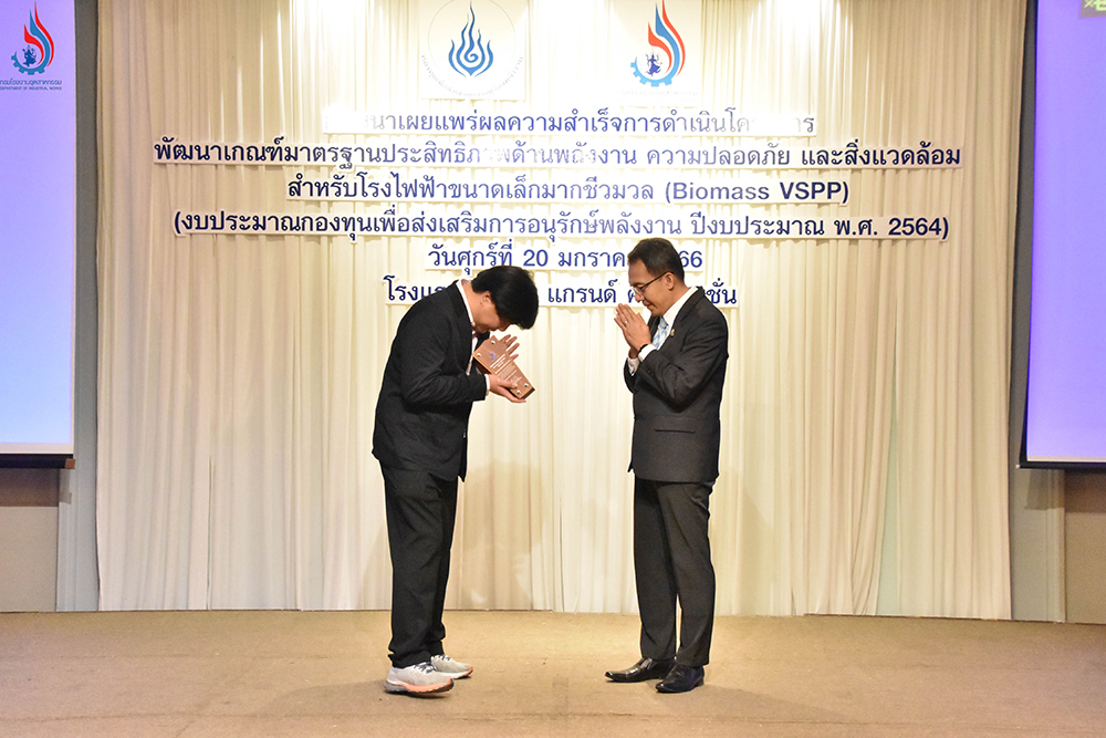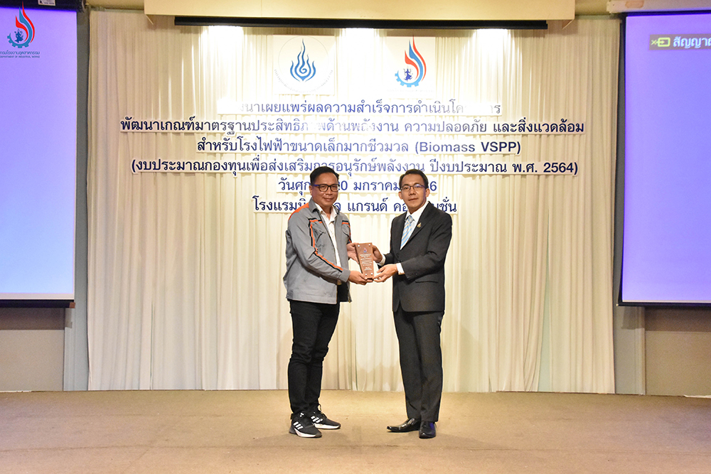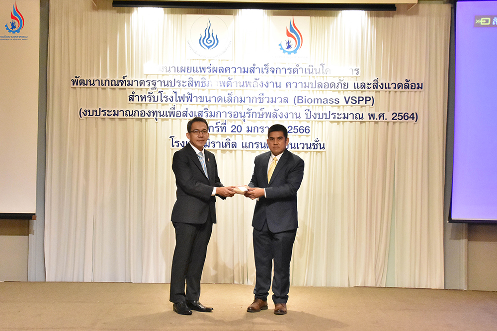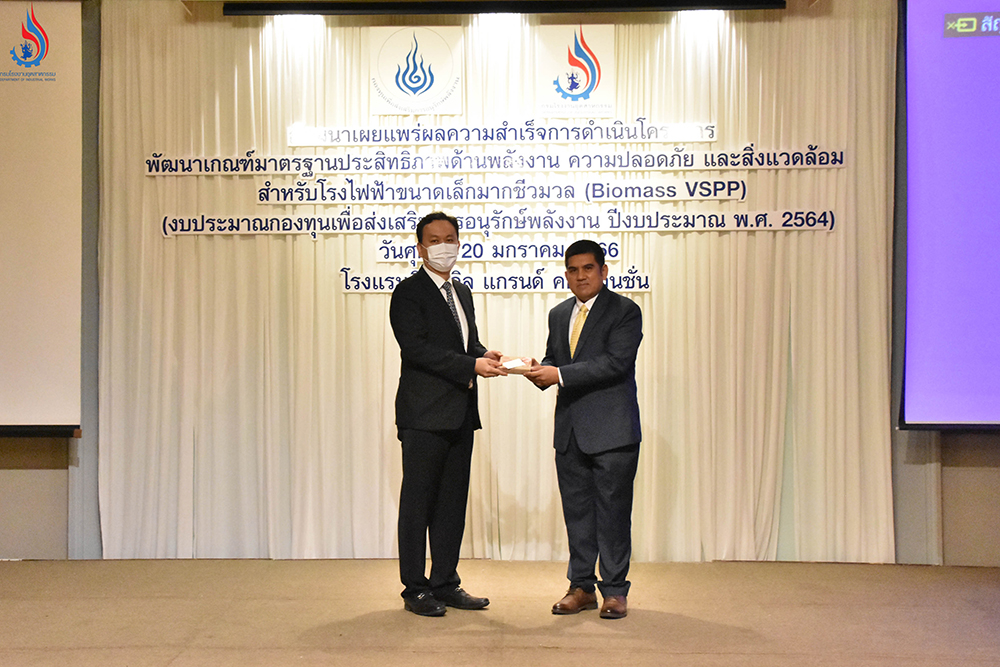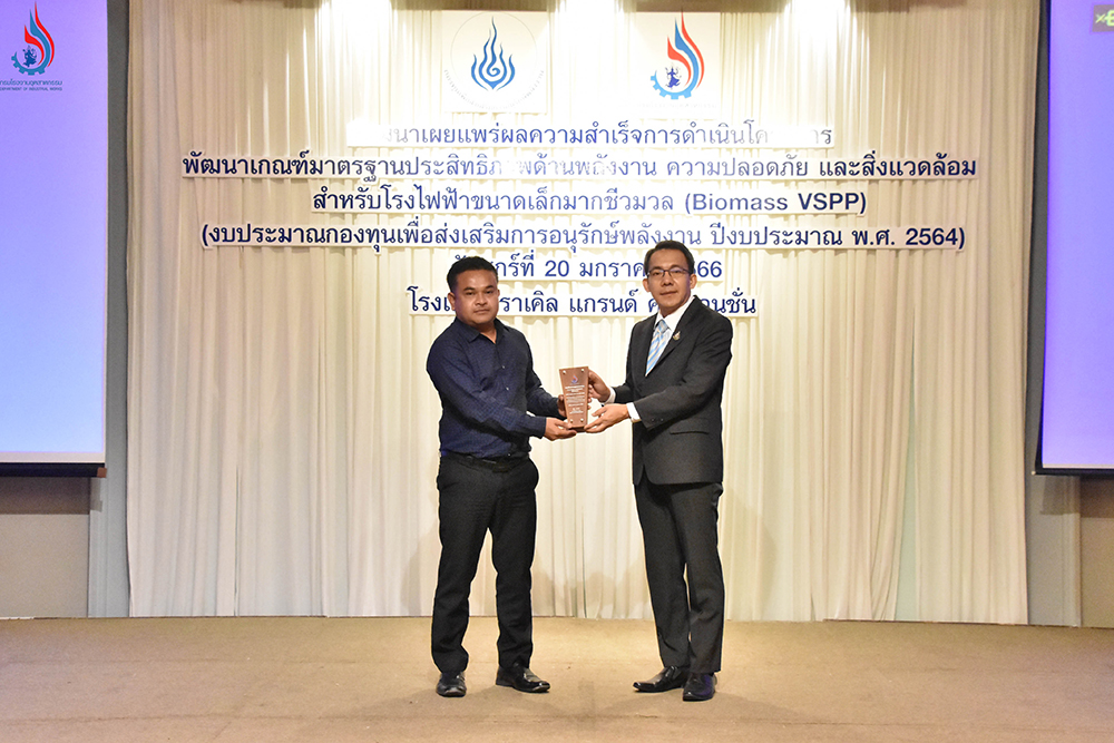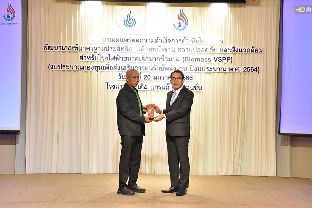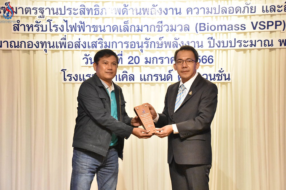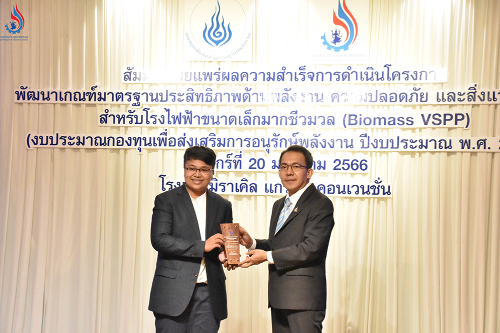 วันที่ 20 มกราคม 2566 นายจุลพงษ์ ทวีศรี อธิบดีกรมโรงงานอุตสาหกรรม ได้มอบหมาย นายศุภกิจ บุญศิริ รองอธิบดีกรมโรงงานอุตสาหกรรม เป็นประธานในการสัมมนาเผยแพร่ผลความสำเร็จการดำเนินโครงการพัฒนาเกณฑ์มาตรฐานประสิทธิภาพด้านพลังงาน ความปลอดภัย และสิ่งแวดล้อมสำหรับโรงไฟฟ้าขนาดเล็กมาก ชีวมวล (Biomass VSPP) (งบประมาณกองทุนเพื่อส่งเสริมการอนุรักษ์พลังงาน ปีงบประมาณ พ.ศ. 2564) พร้อมมอบโล่ประกาศเกียรติคุณแก่ผู้แทนโรงไฟฟ้าชีวมวลขนาดเล็กมากที่เข้าร่วมโครงการ จำนวนกว่า 20 แห่ง โดยมี นายบวร สัตยาวุฒิพงศ์ ผู้อำนวยการกองส่งเสริมเทคโนโลยีความปลอดภัยโรงงาน นายอดิศักดิ์ ชูสุข ผู้อำนวยการกองวิจัยค้นคว้าพลังงาน (พพ.) นายนที สิทธิประศาสน์ รองประธานกลุ่มอุตสาหกรรมพลังงานหมุนเวียน ด้านพลังงานชีวมวล สภาอุตสาหกรรมแห่งประเทศไทย ที่ปรึกษาโครงการจากบริษัท เอ็นโซล จำกัด และผู้แทนโรงไฟฟ้าชีวมวลขนาดเล็กมากเข้าร่วมสัมมนา ณ ห้องประชุม Venus ชั้น 3 โรงแรมมิราเคิล แกรนด์ คอนเวนชั่น กรุงเทพฯ