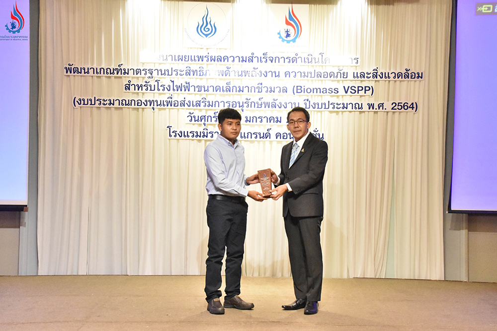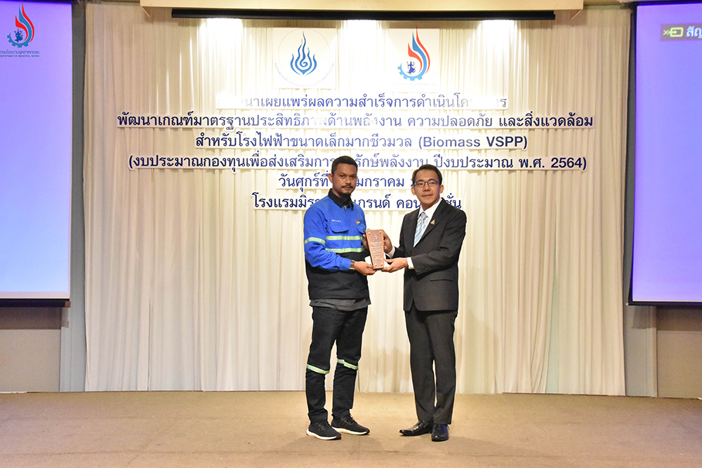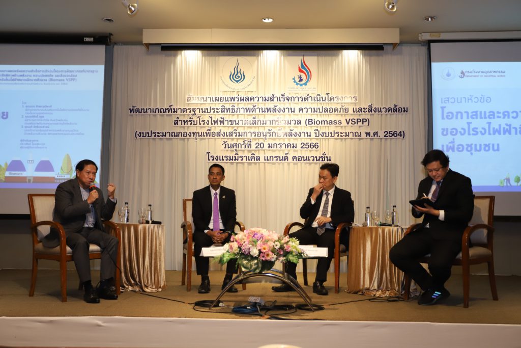 นายศุภกิจ บุญศิริ รองอธิบดีกรมโรงงานอุตสาหกรรม กล่าว การสัมมนาในครั้งนี้ มีวัตถุประสงค์เพื่อเผยแพร่ผลการดำเนินโครงการ โดยผลลัพธ์ของโครงการสามารถลดการใช้พลังงานได้ถึง 17,000 toe/ปี หรือ 86,000,000 บาทต่อปี เทียบเท่า ลดการปลดปล่อยก๊าซคาร์บอนไดออกไซด์ ได้ไม่น้อยกว่า 100,000 ตันคาร์บอนไดออกไซด์เทียบเท่า/ปี และที่สำคัญคือ การพัฒนาเกณฑ์มาตรฐานประสิทธิภาพด้านพลังงาน ความปลอดภัย และสิ่งแวดล้อม สำหรับโรงไฟฟ้าชีวมวลขนาดเล็กมาก (Biomass VSPP) เพื่อส่งเสริมให้เกิดกระตุ้นการปรับปรุงแก้ไข นำไปสู่กระบวนการทำงานที่มีประสิทธิภาพมากยิ่งขึ้น และเป็นแบบอย่างให้กับโรงไฟฟ้าชีวมวลและโรงไฟฟ้าชุมชนเพื่อเศรษฐกิจฐานรากที่ใช้เชื้อเพลิงชีวมวลในอนาคตต่อไป