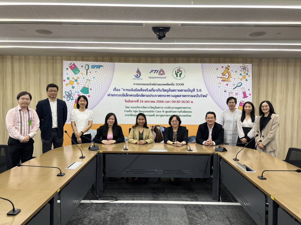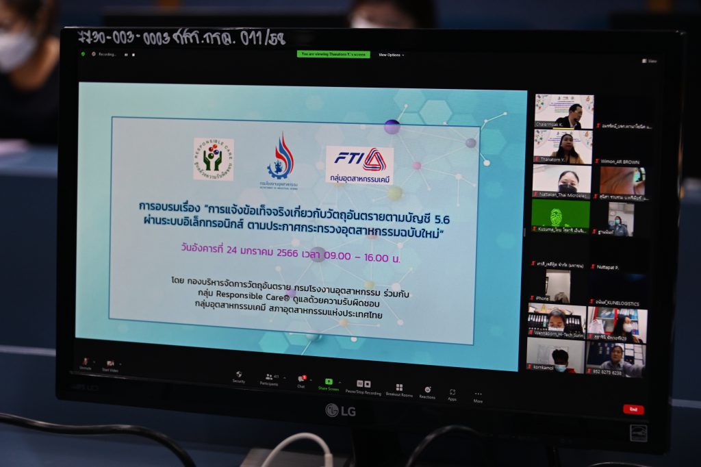 วันนี้ (24 มกราคม 2566) นายจุลพงษ์ ทวีศรี อธิบดีกรมโรงงานอุตสาหกรรม เป็นประธานกล่าวเปิดการอบรม ออนไลน์ เรื่อง “การแจ้งข้อเท็จจริงเกี่ยวกับวัตถุอันตรายตามบัญชี 5.6 ตามประกาศกระทรวงอุตสาหกรรมฉบับใหม่” ผ่านระบบอิเล็กทรอนิกส์ โดยมี นางสาวรัตนา รักษ์ตระกูล ผู้อำนวยการกองบริหารจัดการวัตถุอันตราย กล่าวรายงาน การอบรมออนไลน์ในครั้งนี้ เป็นความร่วมมือกับ กลุ่ม Responsible Care ดูแลด้วยความรับผิดชอบ กลุ่มอุตสาหกรรมเคมี สภาอุตสาหกรรมแห่งประเทศไทย โดยมีผู้ประกอบการวัตถุอันตรายและบุคลากรที่เกี่ยวข้อง เข้าร่วมผ่านระบบอิเล็กทรอนิกส์ กว่า 500 คน