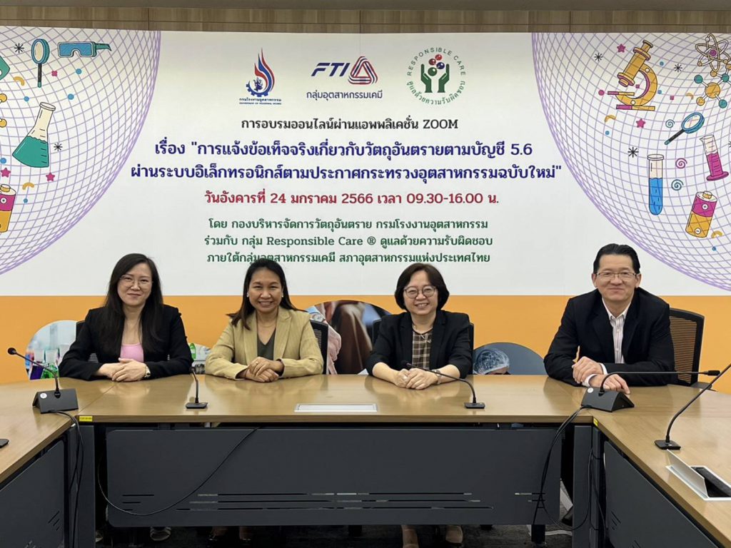 กรมโรงงานอุตสาหกรรม เป็นหน่วยงานที่รับผิดชอบวัตถุอันตรายตามบัญชี 5.6 ซึ่งครอบคลุมกลุ่มสารที่มีสมบัติความเป็นอันตรายต่างๆ จำนวน 10 กลุ่มที่ยังไม่มีหน่วยงานใดกำกับดูแลการผลิตและการนำเข้า โดยจัดเป็นวัตถุอันตรายชนิดที่ 1 ซึ่งกำหนดให้ผู้ผลิตและผู้นำเข้าในปริมาณที่มากกว่า 1 ตันต่อปี ทำการจดแจ้งข้อเท็จจริงผ่านระบบอิเล็กทรอนิกส์ ตามที่กำหนดไว้ในประกากระทรวงอุตสาหกรรมตั้งแต่ปี พ.ศ. 2558 เป็นต้นมา โดยข้อมูลที่กรมโรงงานฯ รวบรวมจะถูกนำมาตรวจสอบและจัดทำเป็น “ทำเนียบสารเคมีที่มีอยู่แล้วของประเทศไทย” โดยผู้ประกอบการทั้งในและต่างประเทศสามารถสืบค้นข้อมูลได้ในเว็บไซต์กรมโรงงานฯ ซึ่งการดำเนินการดังกล่าวถือเป็นการริเริ่มเพื่อนำไปสู่การบริหารจัดการสารเคมีบนหลักการประเมินความเสี่ยง หลังจากจัดทำเนียบสารเคมีแล้ว กองบริหารจัดการวัตถุอันตรายก็ได้มีการศึกษาหลักการและแนวทางในการจัดลำดับความสำคัญของสารเคมีที่มีการใช้ประโยชน์ภายในประเทศ เพื่อที่จะนำไปปรับปรุงการควบคุมกำกับดูแลวัตถุอันตรายภายใต้กฎหมายว่าด้วยวัตถุอันตรายต่อไป ซึ่งผลจากการศึกษาพบว่า ควรมีการปรับปรุงรูปแบบข้อมูลจากการจดแจ้งให้เหมาะสมกับการนำไปใช้ประโยชน์ในการบริหารจัดการมากขึ้นจึงได้ออกประกาศกระทรวงอุตสาหกรรมฉบับใหม่ ปี พ.ศ. 2565 เกี่ยวกับการให้แจ้งข้อเท็จจริงของวัตถุอันตรายบัญชี 5.6 โดยมีการปรับปรุงหลักเกณฑ์และวิธีการบางอย่างเกี่ยวกับจดแจ้งข้อมูล แต่ยังคงกำหนดให้แจ้งเพียงครั้งเดียวสำหรับสารแต่ละรายการ ผ่านระบบอิเล็กทรอนิกส์ (เพื่อไม่ให้เป็นภาระมากจนเกินไป) โดยให้แจ้งภายในวันที่ 30 มิถุนายน ของทุกปี และได้มีการพัฒนาระบบเพื่อให้สามารถจดแจ้งข้อมูลตามประกาศกระทรวงอุตสาหกรรมฉบับใหม่ได้อย่างถูกต้องและเป็นไปในทางเดียวกัน