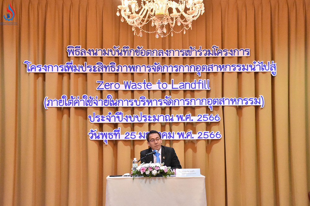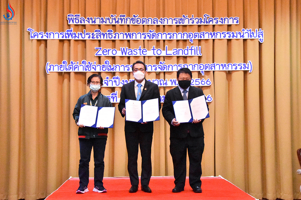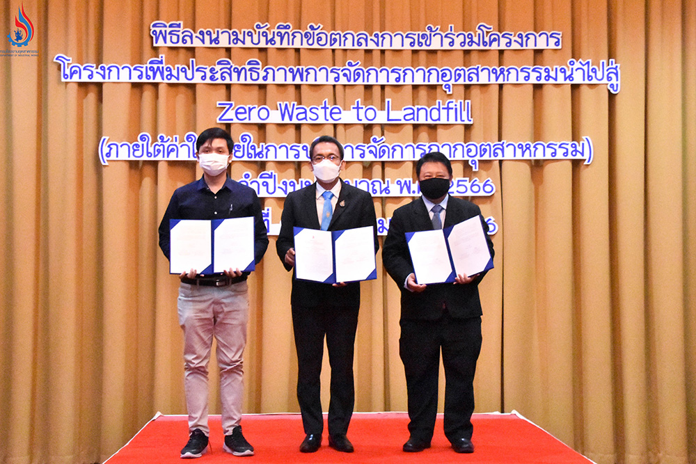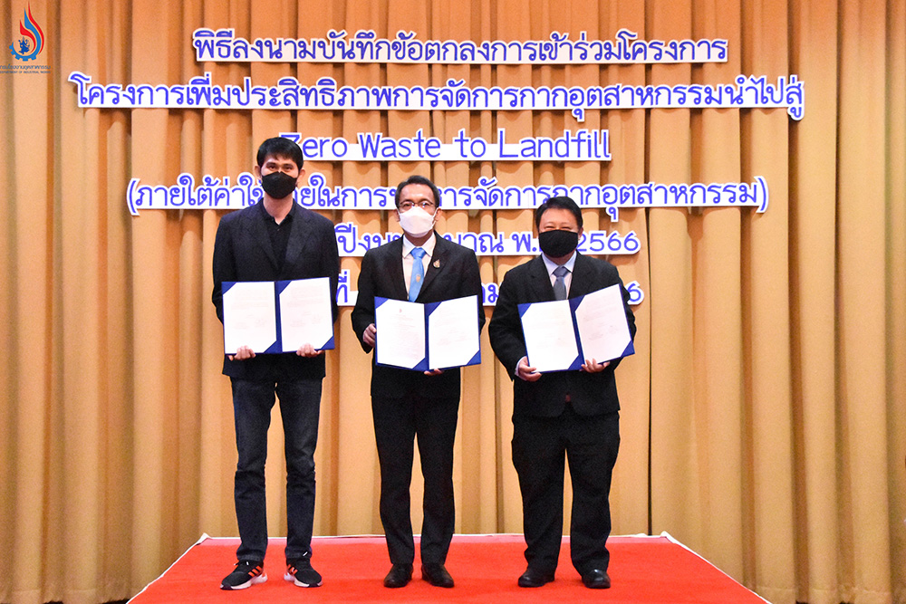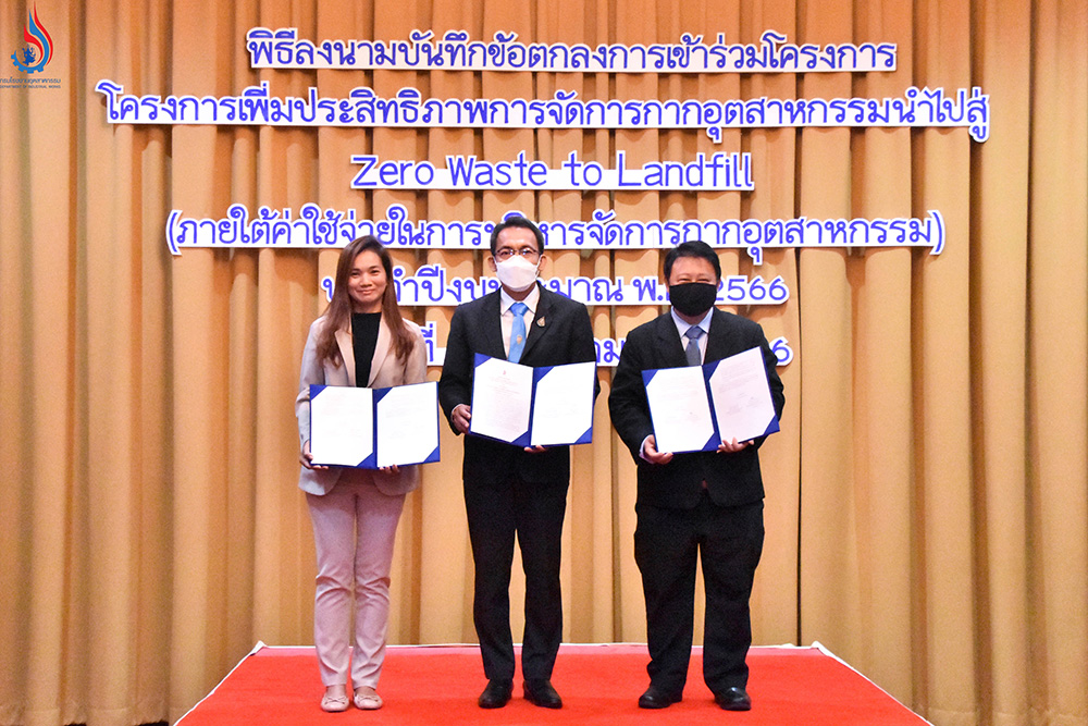 วันที่ 25 มกราคม 2566 นายจุลพงษ์ ทวีศรี อธิบดีกรมโรงงานอุตสาหกรรม มอบหมายให้ นายศุภกิจ บุญศิริ รองอธิบดีกรมโรงงานอุตสาหกรรม เป็นประธานพิธีลงนามบันทึกข้อตกลงในการเข้าร่วมโครงการ (MOU) โครงการเพิ่มประสิทธิภาพการจัดการกากอุตสาหกรรมนำไปสู่ Zero Waste to Landfill ประจำปีงบประมาณ พ.ศ. 2566 โดยมีผู้ประกอบการได้รับการคัดเลือกให้เข้าร่วมลงนามจำนวน 23 โรงงาน ณ ห้องวีไอพี 1 สโมสรทหารบก (วิภาวดี) กรุงเทพฯ