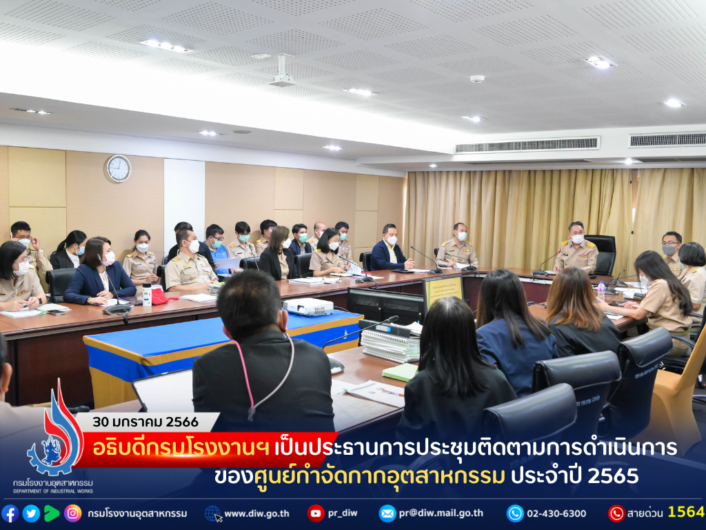 วันที่ 30 มกราคม 2566 เวลา 09.00 น. นายจุลพงษ์ ทวีศรี อธิบดีกรมโรงงานอุตสาหกรรม เป็นประธานการประชุมรายงานผลการดำเนินงาน ประจำปี 2565 ของศูนย์บริการกำจัดกากอุตสาหกรรม (แสมดำ) และศูนย์วิจัยและพัฒนาเพื่อการอนุรักษ์สิ่งแวดล้อม จังหวัดราชบุรี และศูนย์บริหารจัดการวัสดุเหลือใช้อุตสาหกรรม (เตาเผาขยะอุตสาหกรรม) บางปู จังหวัดสมุทรปราการ โดยมี นายศุภกิจ บุญศิริ และ นายวีรพงษ์ เอี่ยมเจริญชัย รองอธิบดีกรมโรงงานอุตสาหกรรม พร้อมด้วย นางจินดา เตชะศรินทร์ ผู้อำนวยการกองบริหารจัดการกากอุตสาหกรรม นางนุชนาถ สุพรรณศรี ผู้เชี่ยวชาญเฉพาะด้านเทคโนโลยีการกำจัดและการจัดการกากอุตสาหกรรม ผู้แทน บริษัท บริหารและพัฒนาเพื่อการอนุรักษ์สิ่งแวดล้อม จำกัด (มหาชน) ผู้แทน บริษัท อัคคีปราการ จำกัด (มหาชน) และเจ้าหน้าที่ที่เกี่ยวข้อง เข้าร่วมประชุม ณ ห้องประชุม 505 ชั้น 5 อาคารกรมโรงงานอุตสาหกรรม