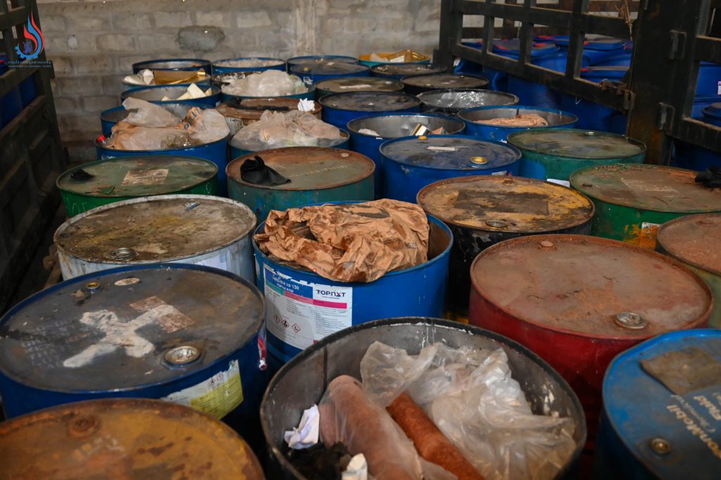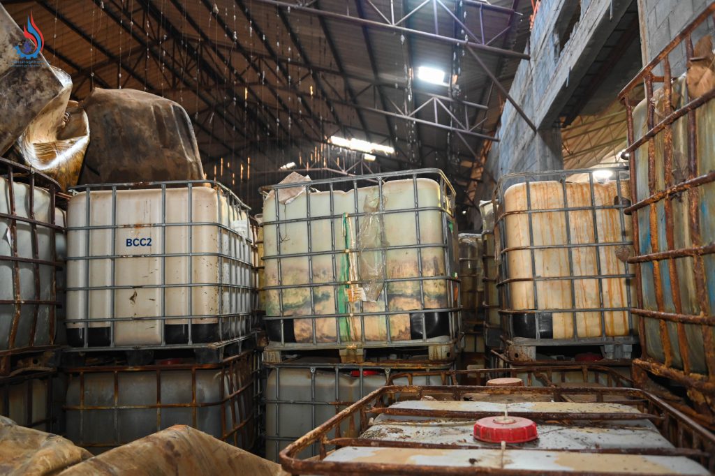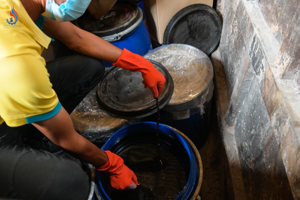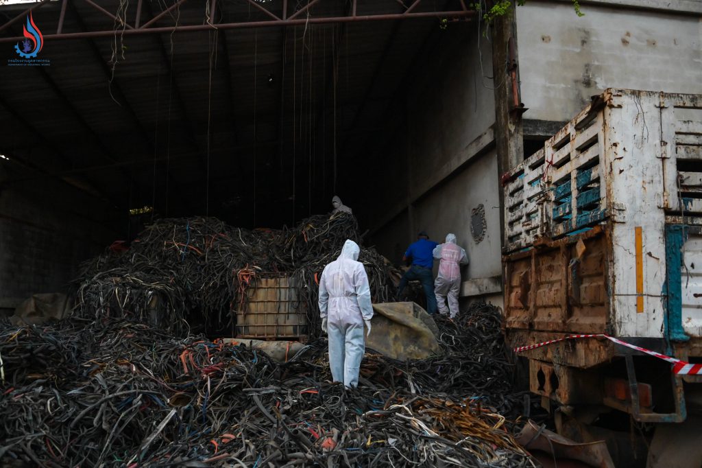 จากการลงพื้นที่ตรวจสอบ พบว่า บริเวณดังกล่าวเป็นโกดังเก่าที่ไม่มีใบอนุญาต ประกอบด้วย อาคาร 5 หลัง ภายในอาคารมี Lugger Truck หรือภาชนะเหล็กสำหรับใช้บรรทุกกากอุตสาหกรรม มีของเหลวซึ่งเข้าข่ายเป็นวัตถุอันตรายบรรจุในถังขนาด 200 ลิตร ถังขนาด 1,000 ลิตร และแกลลอนพลาสติก รวมทั้งเศษวัสดุปนเปื้อนที่มีกลิ่นเหม็นฉุนสารเคมีอีกเป็นจำนวนมาก ข้อสันนิษฐานเบื้องต้นจากร่องรอยที่พบคาดว่ามีความเกี่ยวข้องกับโรงงานแห่งหนึ่งที่ได้รับใบอนุญาตคัดแยกหรือฝังกลบสิ่งปฏิกูลหรือวัสดุที่ไม่ใช้แล้ว