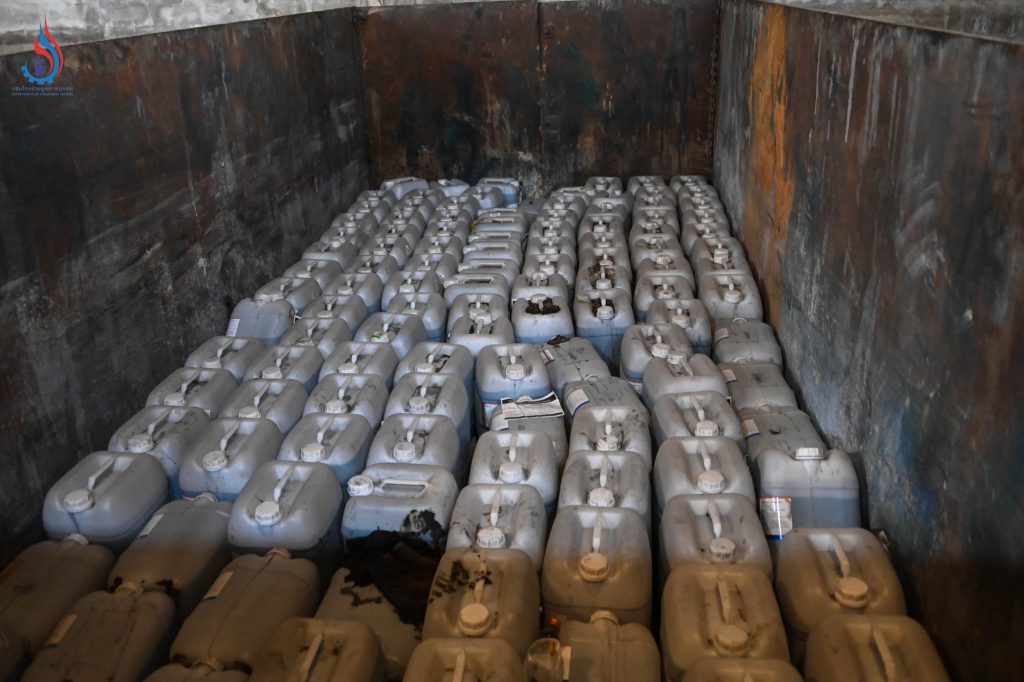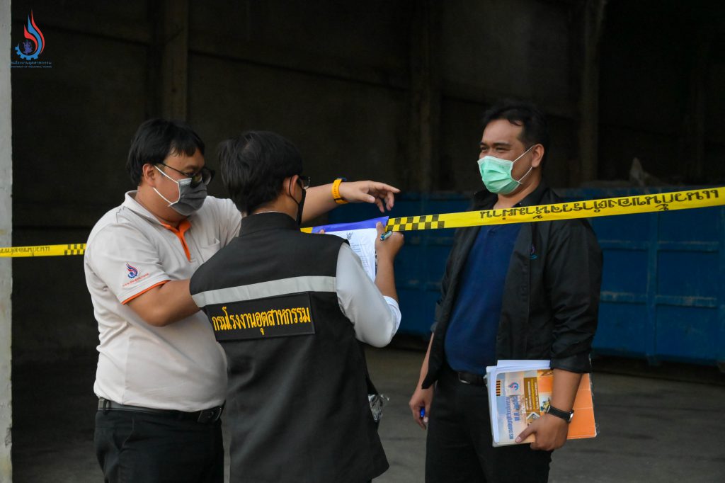 กรมโรงงานอุตสาหกรรม (กรอ.) ได้เก็บตัวอย่างกากอุตสาหกรรมเพื่อนำไปตรวจวิเคราะห์ทดสอบทางห้องปฏิบัติการ พร้อมทำการยึดของเสียวัตถุอันตรายเพื่อส่งมอบให้เจ้าหน้าที่ตำรวจดำเนินการรวบรวมหลักฐาน โดยปิดกั้นพื้นที่ไม่ให้บุคคลที่ไม่เกี่ยวข้องเข้าไปในบริเวณโกดังดังกล่าว ทั้งนี้ กรมโรงงานอุตสาหกรรม อุตสาหกรรมจังหวัดพระนครศรีอยุธยา และองค์กรปกครองส่วนท้องถิ่น ได้นำข้อมูลเข้าแจ้งความดำเนินคดีต่อสถานีตำรวจภูธรภาชี ตามความผิดแห่งพระราชบัญญัติโรงงาน พ.ศ. 2535 พระราชบัญญัติวัตถุอันตราย พ.ศ. 2535 ตลอดจนกฎหมายอื่นที่เกี่ยวข้อง เพื่อสกัดกั้นไม่ให้ความเดือดร้อนขยายวงกว้างไปยังชาวบ้านในพื้นที่อื่น