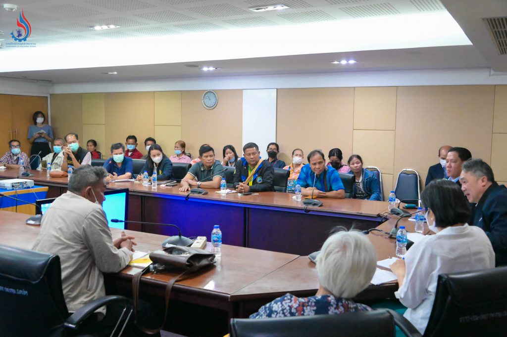 วันที่ 1 มีนาคม 2566 นายจุลพงษ์ ทวีศรี อธิบดีกรมโรงงานอุตสาหกรรม และ นายพรยศ กลั่นกรอง รองอธิบดีกรมโรงงานอุตสาหกรรม พร้อมด้วย นางจินดา เตชะศรินทร์ ผู้อำนวยการกองบริหารจัดการกากอุตสาหกรรม และ นางจุฬารัตน์ มณีเสถียรรัตนา เลขานุการกรม ร่วมรับฟังประชาชน “กลุ่มคนรักษ์หนองหอย” ตำบลวังตะเคียน อำเภอกบินทร์บุรี จังหวัดปราจีนบุรี ราว 30 คน เดินทางมาแจ้งความเดือดร้อนจากการประกอบกิจการโรงงานของ บริษัท ล้อทองคำ เวสต์ จำกัด ตั้งอยู่ที่ ตำบลวังตะเคียน อำเภอกบินทร์บุรี จังหวัดปราจีนบุรี โดยมี นายแสวง เบ้าโชติ ผู้ใหญ่บ้าน หมู่ที่ 4 บ้านหนองหอย เป็นผู้นำชาวบ้านมาแจ้งความเดือดร้อน ณ ห้องประชุม 505 ชั้น 5 อาคารกรมโรงงานอุตสาหกรรม