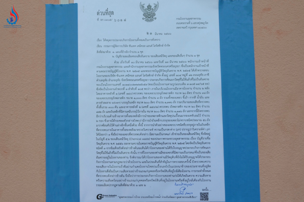#กรมโรงงานอุตสาหกรรม #กรมโรงงาน #กรอ #DIW #MIND #กระทรวงอุตสาหกรรม #อุตสาหกรรมจังหวัดพระนครศรีอยุธยา #บริษัทซันเทคเคมิคอลแอนด์โลจิสติกส์จำกัด #ซันเทค #กากอุตสาหกรรม #ของเสียอันตราย #โรงงาน105 #โรงงาน106 #โกดังอุทัย