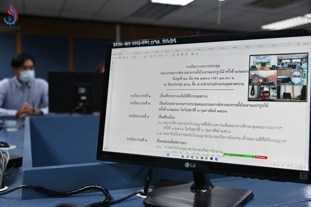 เมื่อวันที่ 29 มีนาคม 2566 เวลา 13.30 น. นายจุลพงษ์ ทวีศรี อธิบดีกรมโรงงานอุตสาหกรรม เป็นประธานการประชุมคณะกรรมการพิจารณาการตั้งโรงงานแปรรูปไม้ ครั้งที่ 2/2566 โดยมี นายภัทรพล ลิ้มภักดี ผู้อำนวยการกองบริการงานอนุญาตโรงงาน 2 ในนามกรรมการ และนายภูธร กวีพันธ์ ผู้อำนวยการส่วนที่ 1 กองบริการงานอนุญาตโรงงาน 2 ในนามกรรมการและเลขานุการ เข้าร่วมประชุม ณ ห้องประชุม 503 ชั้น 5 อาคารกรมโรงงานอุตสาหกรรม พร้อมด้วย คณะกรรมการฯ เข้าร่วมประชุมผ่านระบบออนไลน์ (Zoom Meeting)