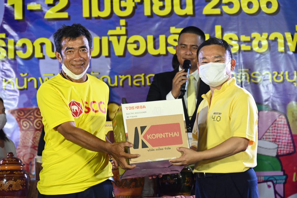 โอกาสนี้ ปลัดกระทรวงอุตสาหกรรม พร้อมคณะ ได้ร่วมบริจาคหน้ากากอนามัย ถังขยะเปียก ข้าวสาร พร้อมมอบโชคให้กับประชาชนชาวจังหวัดราชบุรีที่มาเที่ยวงานด้วย