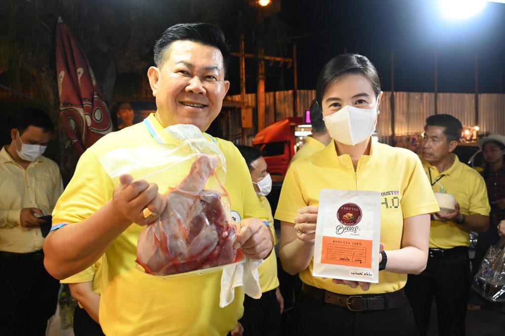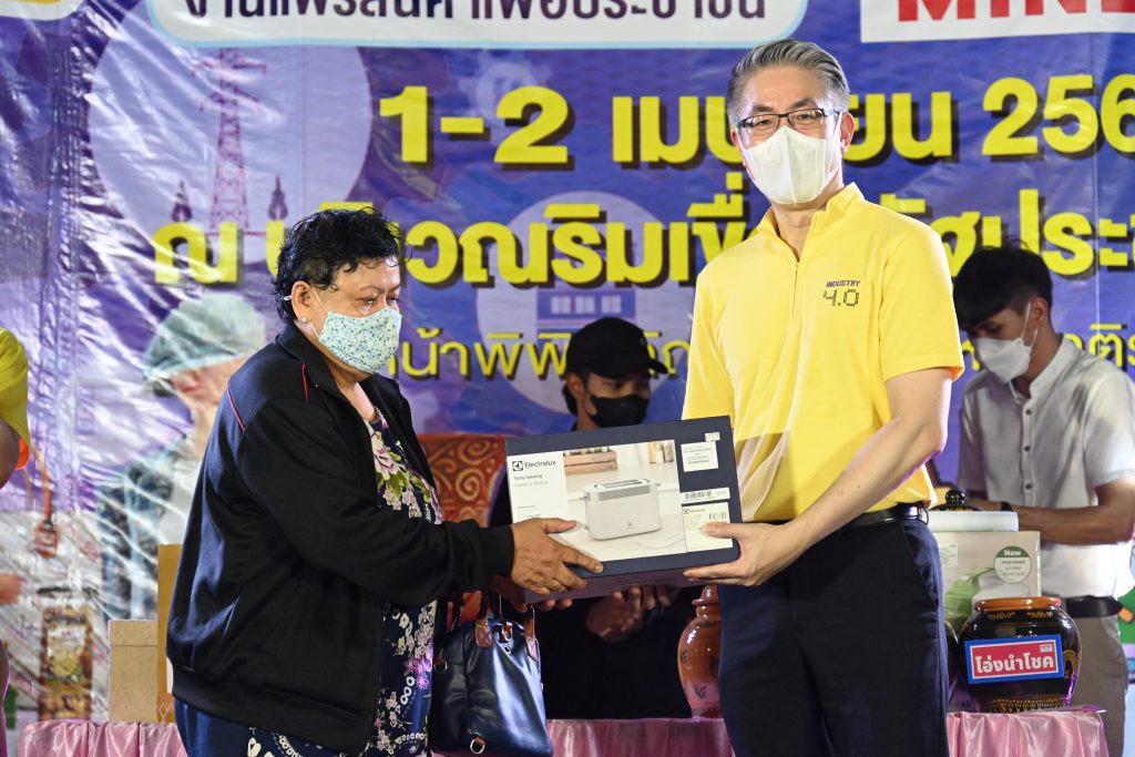 โอกาสนี้ ปลัดกระทรวงอุตสาหกรรม พร้อมคณะ ได้ร่วมบริจาคหน้ากากอนามัย ถังขยะเปียก ข้าวสาร พร้อมมอบโชคให้กับประชาชนชาวจังหวัดราชบุรีที่มาเที่ยวงานด้วย