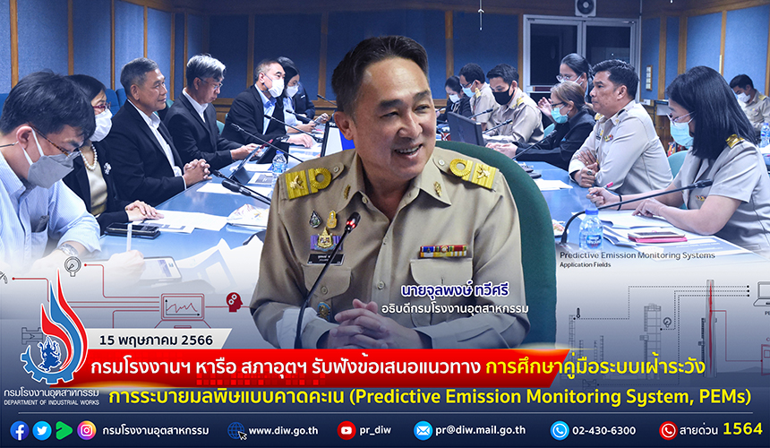āđ€āļĄāļ·āđˆāļ­āļ§āļąāļ™āļ—āļĩāđˆ 15 āļžāļĪāļĐāļ āļēāļ„āļĄ 2566 āļ™āļēāļĒāļˆāļļāļĨāļžāļ‡āļĐāđŒ āļ—āļ§āļĩāļĻāļĢāļĩ āļ­āļ˜āļīāļšāļ”āļĩāļāļĢāļĄāđ‚āļĢāļ‡āļ‡āļēāļ™āļ­āļļāļ•āļŠāļēāļŦāļāļĢāļĢāļĄ āđ€āļ›āđ‡āļ™āļ›āļĢāļ°āļ˜āļēāļ™āļāļēāļĢāļ›āļĢāļ°āļŠāļļāļĄ āļŦāļēāļĢāļ·āļ­āđ€āļāļĩāđˆāļĒāļ§āļāļąāļšāļ‚āđ‰āļ­āđ€āļŠāļ™āļ­āđāļ™āļ§āļ—āļēāļ‡āļāļēāļĢāļĻāļķāļāļĐāļēāļ„āļđāđˆāļĄāļ·āļ­āļĢāļ°āļšāļšāđ€āļāđ‰āļēāļĢāļ°āļ§āļąāļ‡āļāļēāļĢāļĢāļ°āļšāļēāļĒāļĄāļĨāļžāļīāļĐāđāļšāļšāļ„āļēāļ”āļ„āļ°āđ€āļ™ (Predictive Emission Monitoring System, PEMs) āđ‚āļ”āļĒāļĄāļĩ āļ™āļēāļĒāļ§āļĩāļĢāļžāļ‡āļĐāđŒ āđ€āļ­āļĩāđˆāļĒāļĄāđ€āļˆāļĢāļīāļāļŠāļąāļĒ āļĢāļ­āļ‡āļ­āļ˜āļīāļšāļ”āļĩāļāļĢāļĄāđ‚āļĢāļ‡āļ‡āļēāļ™āļ­āļļāļ•āļŠāļēāļŦāļāļĢāļĢāļĄ āļ™āļēāļĒāļ›āļĢāļ°āļŠāļĄ āļ”āļģāļĢāļ‡āļžāļ‡āļĐāđŒ āļœāļđāđ‰āļ­āļģāļ™āļ§āļĒāļāļēāļĢāļāļ­āļ‡āļ§āļīāļˆāļąāļĒāđāļĨāļ°āđ€āļ•āļ·āļ­āļ™āļ āļąāļĒāļĄāļĨāļžāļīāļĐāđ‚āļĢāļ‡āļ‡āļēāļ™ āļ™āļēāļ‡āļŠāļēāļ§āļ›āļąāļ—āļĄāļ§āļĢāļĢāļ“ āļ„āļļāļ“āļ›āļĢāļ°āđ€āļŠāļĢāļīāļ āļœāļđāđ‰āļ­āļģāļ™āļ§āļĒāļāļēāļĢāļāļ­āļ‡āļŠāđˆāļ‡āđ€āļŠāļĢāļīāļĄāđ€āļ—āļ„āđ‚āļ™āđ‚āļĨāļĒāļĩāļŠāļīāđˆāļ‡āđāļ§āļ”āļĨāđ‰āļ­āļĄāđ‚āļĢāļ‡āļ‡āļēāļ™āļ­āļļāļ•āļŠāļēāļŦāļāļĢāļĢāļĄ āļ™āļēāļĒāļŠāļ§āļĨāļīāļ• āļ—āļīāļžāļžāļēāļ§āļ™āļīāļŠ āļ›āļĢāļ°āļ˜āļēāļ™āļ„āļĨāļąāļŠāđ€āļ•āļ­āļĢāđŒāļ›āļīāđ‚āļ•āļĢāđ€āļ„āļĄāļĩ āļŠāļ āļēāļ­āļļāļ•āļŠāļēāļŦāļāļĢāļĢāļĄāđāļŦāđˆāļ‡āļ›āļĢāļ°āđ€āļ—āļĻāđ„āļ—āļĒ āļ™āļēāļĒāļŠāļļāļĢāļˆāļīāļ• āļŠāļ–āļēāļžāļĢāļ§āļĨāļąāļĒāļĢāļąāļ•āļ™āđŒ āļ›āļĢāļ°āļ˜āļēāļ™āļ„āļ“āļ°āļ—āļģāļ‡āļēāļ™āļĻāļķāļāļĐāļēāļāļēāļĢāļāļģāļŦāļ™āļ” PEMs āļ—āļ”āđāļ—āļ™ CEMs āđƒāļ™āļ›āļĢāļ°āļāļēāļĻāļāļĢāļ°āļ—āļĢāļ§āļ‡āļ­āļļāļ•āļŠāļēāļŦāļāļĢāļĢāļĄ āļ„āļĨāļąāļŠāđ€āļ•āļ­āļĢāđŒāļ›āļīāđ‚āļ•āļĢāđ€āļ„āļĄāļĩ āļžāļĢāđ‰āļ­āļĄāļ•āļąāļ§āđāļ—āļ™āļˆāļēāļ āļ„āļĨāļąāļŠāđ€āļ•āļ­āļĢāđŒāļ›āļīāđ‚āļ•āļĢāđ€āļ„āļĄāļĩ āļŠāļ āļēāļ­āļļāļ•āļŠāļēāļŦāļāļĢāļĢāļĄāđāļŦāđˆāļ‡āļ›āļĢāļ°āđ€āļ—āļĻāđ„āļ—āļĒ āđāļĨāļ°āđ€āļˆāđ‰āļēāļŦāļ™āđ‰āļēāļ—āļĩāđˆāļāļĢāļĄāđ‚āļĢāļ‡āļ‡āļēāļ™āļ­āļļāļ•āļŠāļēāļŦāļāļĢāļĢāļĄāļ—āļĩāđˆāđ€āļāļĩāđˆāļĒāļ§āļ‚āđ‰āļ­āļ‡ āļ“ āļŦāđ‰āļ­āļ‡āļ›āļĢāļ°āļŠāļļāļĄ 503 āļāļĢāļĄāđ‚āļĢāļ‡āļ‡āļēāļ™āļ­āļļāļ•āļŠāļēāļŦāļāļĢāļĢāļĄ