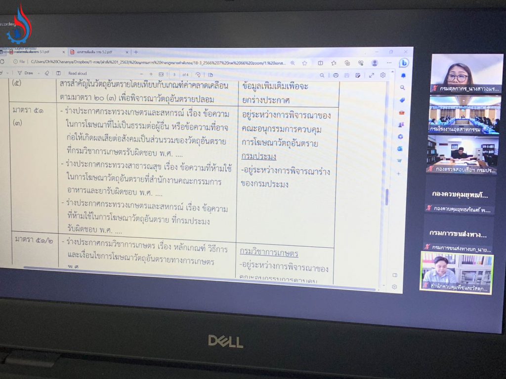 เมื่อวันที่ 7 กรกฎาคม 2566 นายจุลพงษ์ ทวีศรี อธิบดีกรมโรงงานอุตสาหกรรม มอบหมายให้ นายศุภกิจ บุญศิริ รองอธิบดีกรมโรงงานอุตสาหกรรม เป็นประธานการประชุมคณะอนุกรรมการพิจารณาร่างกฎหมายลำดับรองออกตามความในพระราชบัญญัติวัตถุอันตราย พ.ศ. 2535 และที่มีการแก้ไขเพิ่มเติม ครั้งที่ 18-3/2566 โดยมีผู้แทนจากหลายหน่วยงาน ได้แก่ สำนักงานคณะกรรมการอาหารและยา กรมวิชาการเกษตร กรมประมง กรมปศุสัตว์ กรมธุรกิจพลังงาน สำนักงานคณะกรรมการกฤษฎีกา กรมศุลกากร กรมการขนส่งทางบก กรมควบคุมมลพิษ กรมการอุตสาหกรรมทหาร กรมสวัสดิการและคุ้มครองแรงงาน รวมทั้งเจ้าหน้าที่กองกฎหมายและกองบริหารจัดการวัตถุอันตราย ร่วมกันพิจารณากลั่นกรองร่างประกาศที่อาศัยอำนาจตามพระราชบัญญัติวัตถุอันตราย พ.ศ. 2535 และแก้ไขเพิ่มเติม ณ ห้องประชุม 509 กรมโรงงานอุตสาหกรรม และผ่านทางระบบออนไลน์