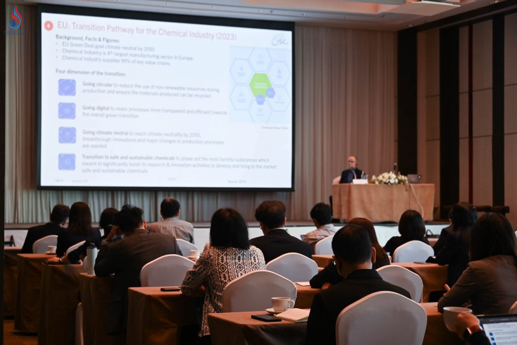 เมื่อวันที่ 11 มกราคม 2567 นายจุลพงษ์ ทวีศรี อธิบดีกรมโรงงานอุตสาหกรรม มอบหมายให้นายสุนทร แก้วสว่าง รองอธิบดีกรมโรงงานอุตสาหกรรม เป็นประธานเปิดการประชุมรับฟังความคิดเห็นต่อ (ร่าง) แผนที่นำทางการขับเคลื่อนอุตสาหกรรมเคมีที่ยั่งยืนและเป็นมิตรต่อสภาพภูมิอากาศของประเทศไทย ภายใต้โครงการ Climate Action Programme for the Chemical Industry (CAPCI): Supporting the Development of a National Roadmap on Sustainable Chemical and Climate Change for Thailand โดยมี ดร. เดสเลฟ ชไรเบอร์ (Dr. Detlef Schreiber) ผู้อำนวยการโครงการ CAPCI องค์กรความร่วมมือระหว่างประเทศของเยอรมัน (GIZ) ร่วมบรรยายพิเศษการขับเคลื่อนอุตสาหกรรมเคมีที่ยั่งยืนในประเทศต่าง ๆ และมีนางสาวอารยา ไสลเพชร ผู้อำนวยการกองยุทธศาสตร์และแผนงาน นางสาวปานทอง ศรีคัฒนพรหม รักษาการนักวิทยาศาสตร์เชี่ยวชาญ กองบริหารจัดการวัตถุอันตราย ผู้แทนจากหน่วยงานภาครัฐ ผู้ประกอบการภาคเอกชน สถาบันการศึกษาวิจัย ศูนย์ความเป็นเลิศด้านการจัดการสารและของเสียอันตราย จุฬาลงกรณ์มหาวิทยาลัย ที่ปรึกษาโครงการฯ และเจ้าหน้าที่กรมโรงงานอุตสาหกรรมที่เกี่ยวข้อง รวม 97 คน เข้าร่วมประชุม ณ โรงแรมอีสติน แกรนด์ สาทร กรุงเทพฯ