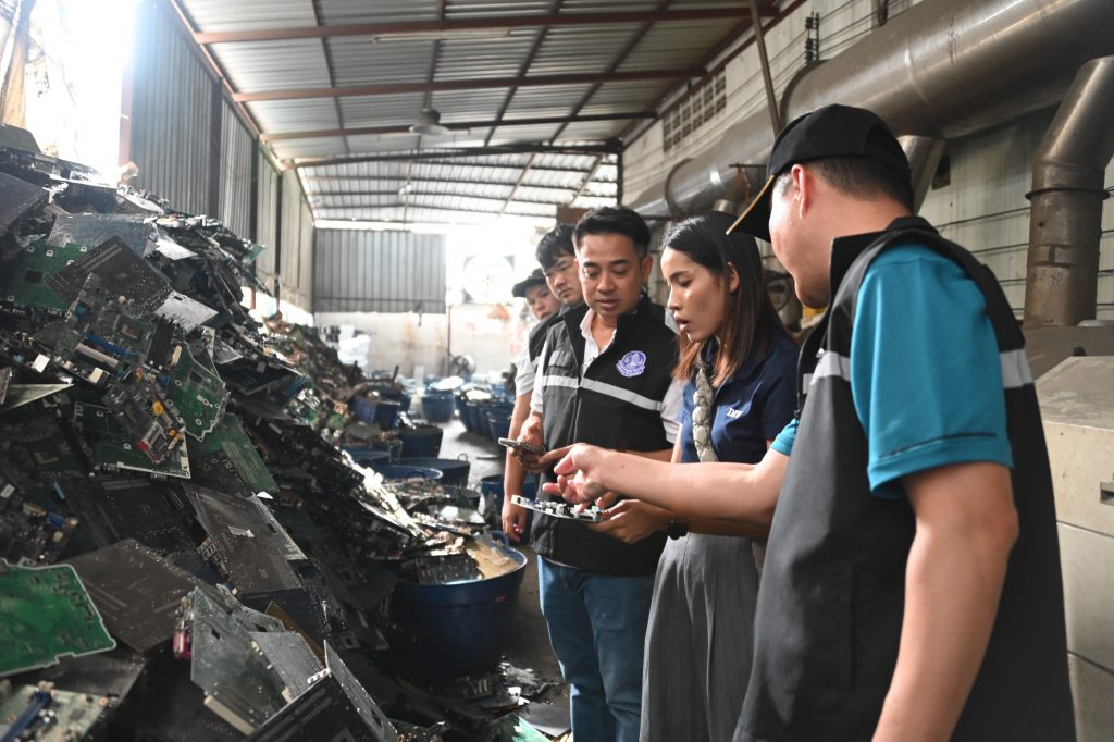 นายเอกนัฏ พร้อมพันธุ์ รมว.อุตสาหกรรม เปิดเผยว่า ได้สั่งทีมตรวจการสุดซอยนำโดย น.ส.ฐิติภัสร์ โชติเดชาชัยนันต์ หัวหน้าคณะทำงาน รมว.อุตสาหกรรม และนายเอกนิติ รมยานนท์ ผู้ตรวจราชการกระทรวงอุตสาหกรรม พร้อมด้วยอุตสาหกรรมจังหวัดสมุทรสาคร และเจ้าหน้าที่กองบริหารจัดการกากอุตสาหกรรม กรมโรงงานอุตสาหกรรม ลงพื้นที่ตรวจสอบ บริษัท ซี เอช เอช รีไซเคิล จำกัด จ.สมุทรสาคร โดยมี พ.ต.อ.อภิสัณฐ์ ไชยรัตน์ ผู้กำกับการ 5 กองบังคับการปราบปรามการกระทำความผิดเกี่ยวกับทรัพยากรธรรมชาติและสิ่งแวดล้อม (บก.ปทส.) ร่วมปฏิบัติการในครั้งนี้ด้วย พบมีการลักลอบประกอบกิจการโดยไม่ได้รับอนุญาต ครอบครองวัตถุอันตรายขยะอิเล็กทรอนิกส์กว่า 1,200 ตัน พบเครื่องจ่ายไฟฟ้าสำหรับเครื่องใช้อิเล็กทรอนิกส์ไม่แสดงเครื่องหมายมาตรฐานผลิตภัณฑ์ (มอก.) และพบของกลางบางส่วนที่คาดว่านำมาจาก บริษัท ทีแอนด์ที เวสท์ แมเนจเม้นท์ 2017 จำกัด จ.ปราจีนบุรี ที่ถูกกระทรวงอุตสาหกรรมสั่งปิดไปตั้งแต่เดือน ก.ย.67 เนื่องจากฝ่าฝืน พ.ร.บ.โรงงาน พ.ศ.2535