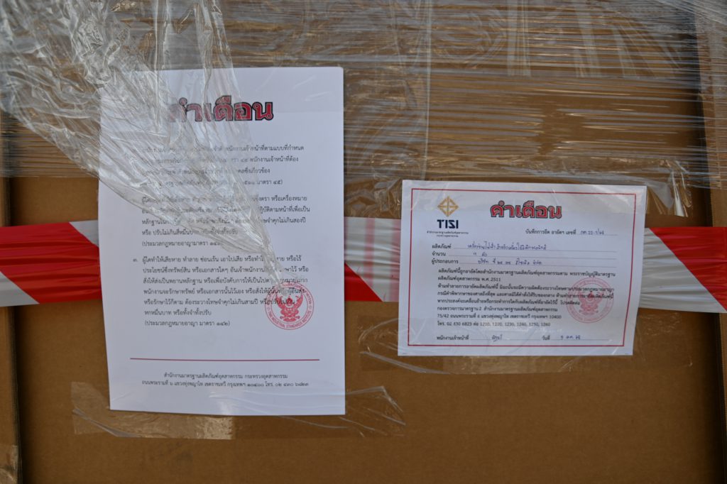 4.เจ้าหน้าที่สำนักงานมาตรฐานผลิตภัณฑ์อุตสาหกรรม (สมอ.) ยังได้แจ้งข้อหาในส่วนของเครื่องจ่ายไฟฟ้าไม่มีเครื่องหมาย มอก. มีโทษตามมาตรา 55 จำคุกไม่เกิน 6 เดือนหรือปรับไม่เกิน 5 แสนบาท หรือทั้งจำทั้งปรับ นอกจากนี้เจ้าหน้าที่จะแจ้งข้อหาร่วมกันลักลอบเคลื่อนย้ายทำลายของกลาง มีโทษจำคุกตั้งแต่ 2 ปีขึ้นไปและปรับตั้งแต่ 40,000 บาทหรือทั้งจำและปรับ