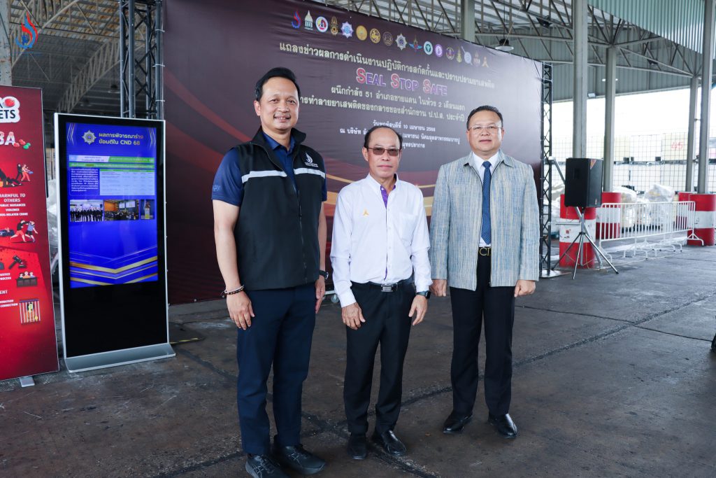 พิธีแถลงผลการดำเนินงานตามปฏิบัติการสกัดกั้นและปราบปรามยาเสพติด Seal Stop Safe ผนึกกำลัง 51 อำเภอชายแดน ในห้วง 2 เดือนแรก (1 กุมภาพันธ์ – 31 มีนาคม 2568) และการทำลายยาเสพติดของกลางของสำนักงานคณะกรรมการป้องกันและปราบปรามยาเสพติด (ป.ป.ส.) ประจำปี 2568 (ครั้งที่ 2) โดยมีนางสาวแพทองธาร ชินวัตร นายกรัฐมนตรี เป็นประธานการ