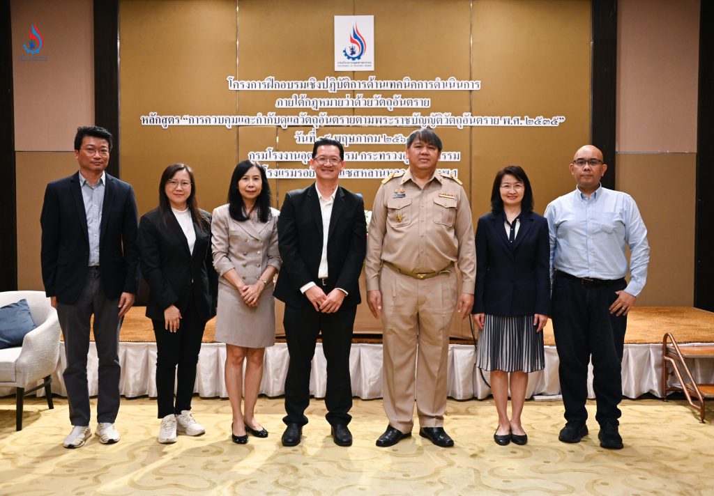 เมื่อวันที่ 19 พฤษภาคม 2568 นายสุนทร แก้วสว่าง รองอธิบดีกรมโรงงานอุตสาหกรรม เป็นประธานเปิดการอบรมเชิงปฏิบัติการด้านเทคนิคการดำเนินการภายใต้กฎหมายว่าด้วยวัตถุอันตราย หลักสูตร “การควบคุมและกำกับดูแลวัตถุอันตรายตามพระราชบัญญัติวัตถุอันตราย พ.ศ. 2535” โดยได้รับเกียรติจากนายเฉลิมศักดิ์ กาญจนวรินทร์ ประธานกิตติมศักดิ์กลุ่ม Responsible Care@ กลุ่มอุตสาหกรรมเคมี สภาอุตสาหกรรมแห่งประเทศไทย มาร่วมถ่ายทอดความรู้และประสบการณ์แก่เจ้าหน้าที่กรมโรงงานอุตสาหกรรม มีการบรรยายหัวข้อ “ระบบจำแนกและการสื่อสารความเป็นอันตราย (Globally Harmonized System of Classification and Labelling of Chemicals: GHS)” พร้อมทั้งการแบ่งกลุ่มฝึกปฏิบัติ (Workshop) ณ โรงแรมรอยัล ปริ้นเซส หลานหลวง กรุงเทพฯ