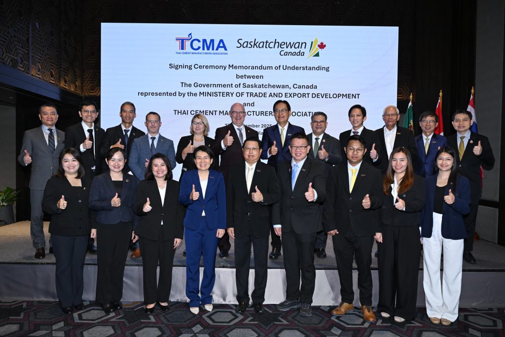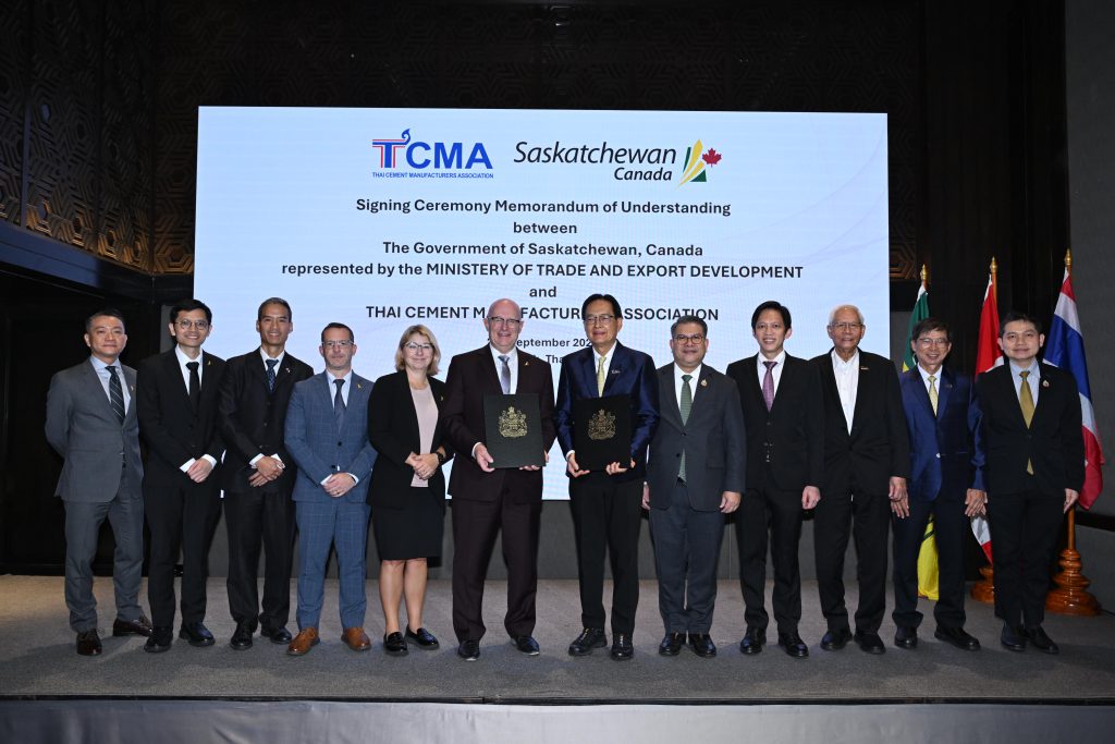 คณะผู้บริหาร กรอ. ร่วมเป็นสักขีพยานในพิธีลงนามบันทึกความเข้าใจ (MoU) ระหว่างสมาคมอุตสาหกรรมปูนซีเมนต์ไทย (TCMA) และรัฐซัสแคตเชวัน (Saskatchewan) ประเทศแคนาดา