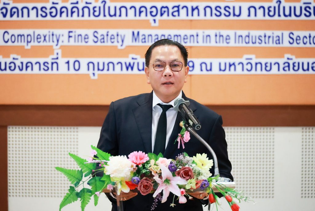 🏭อธิบดีกรมโรงงานอุตสาหกรรม กล่าวถึงความสำคัญของการจัดงานในครั้งนี้ว่า “การบริหารจัดการความปลอดภัยในยุคปัจจุบันมีความซับซ้อนและท้าทายมากขึ้น กรอ. มุ่งมั่นที่จะยกระดับมาตรฐานการป้องกันอัคคีภัยในโรงงานอุตสาหกรรมให้เป็นสากล การร่วมมือกับภาคการศึกษาในการจัดสัมมนาครั้งนี้ถือเป็นก้าวสำคัญในการถ่ายทอดองค์ความรู้และกฎหมายที่เกี่ยวข้องให้กับผู้ประกอบการและพนักงาน เพื่อสร้างสภาพแวดล้อมการทำงานที่ปลอดภัยและลดความเสี่ยงต่อการเกิดอุบัติภัยร้ายแรง”